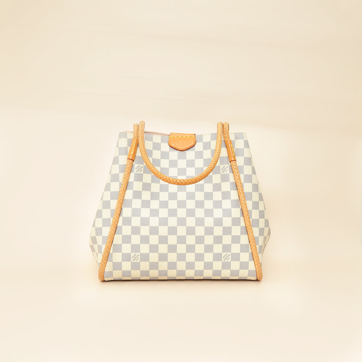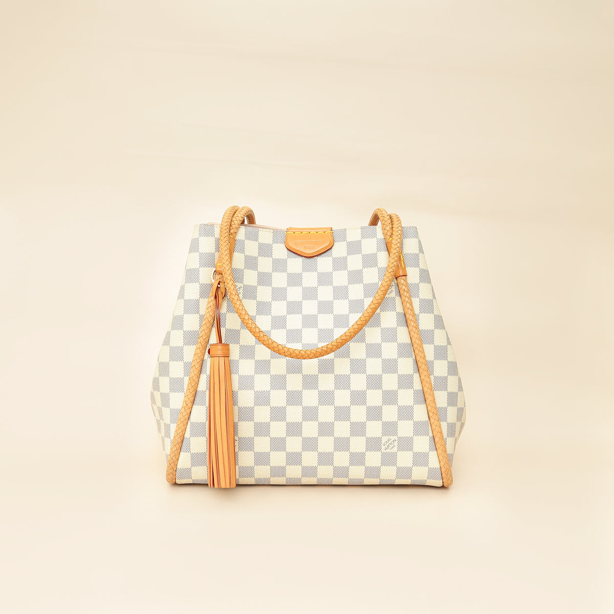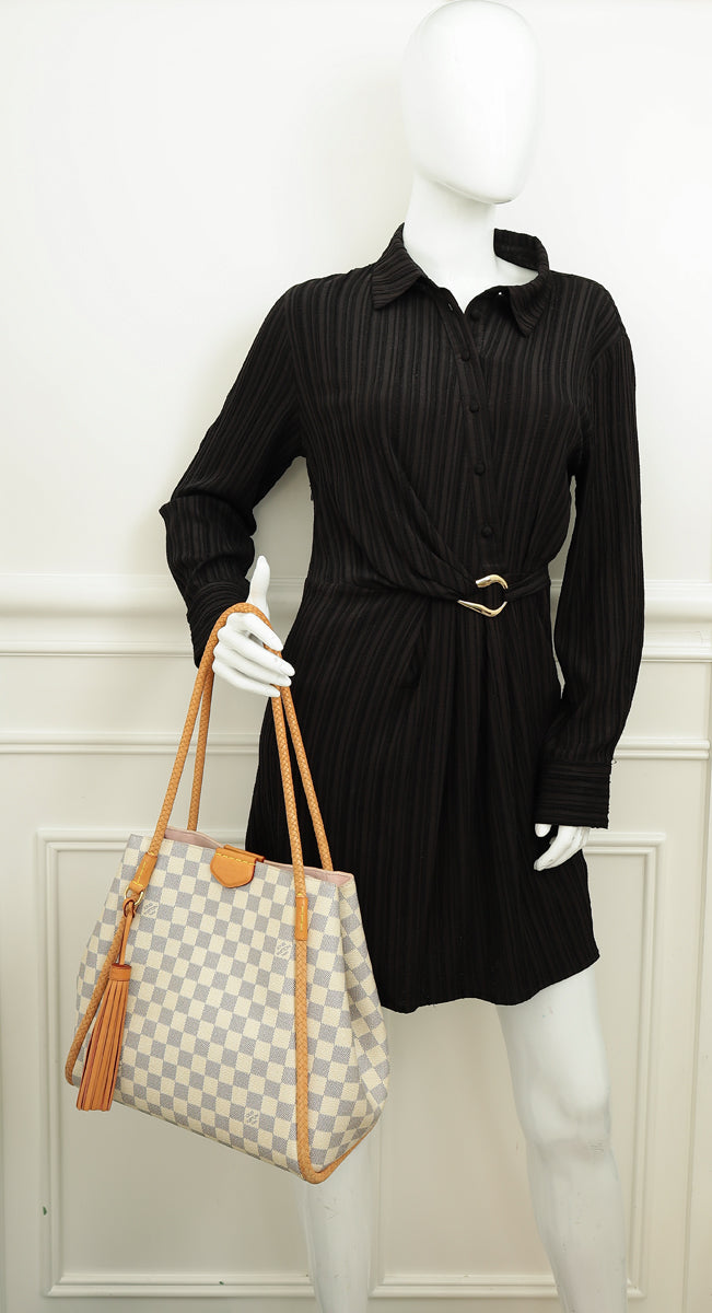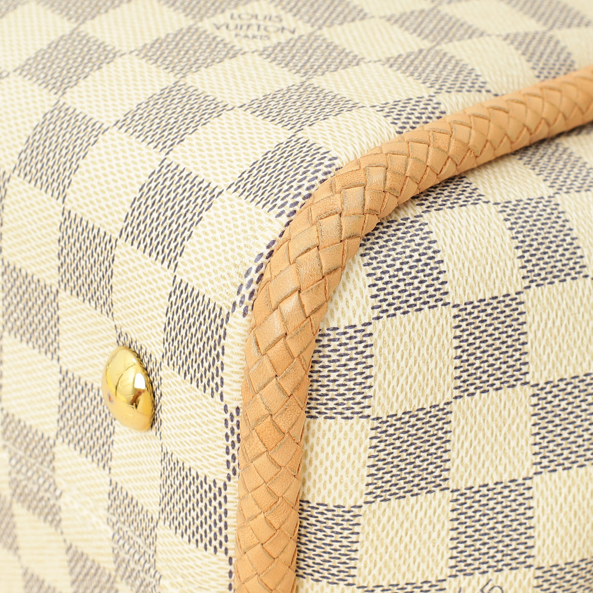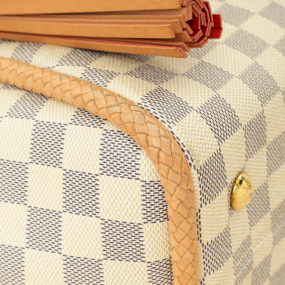 - Material: Damier Azur Coated Canvas with Natural Cowhide Leather Trim and Interior Rose Ballerine