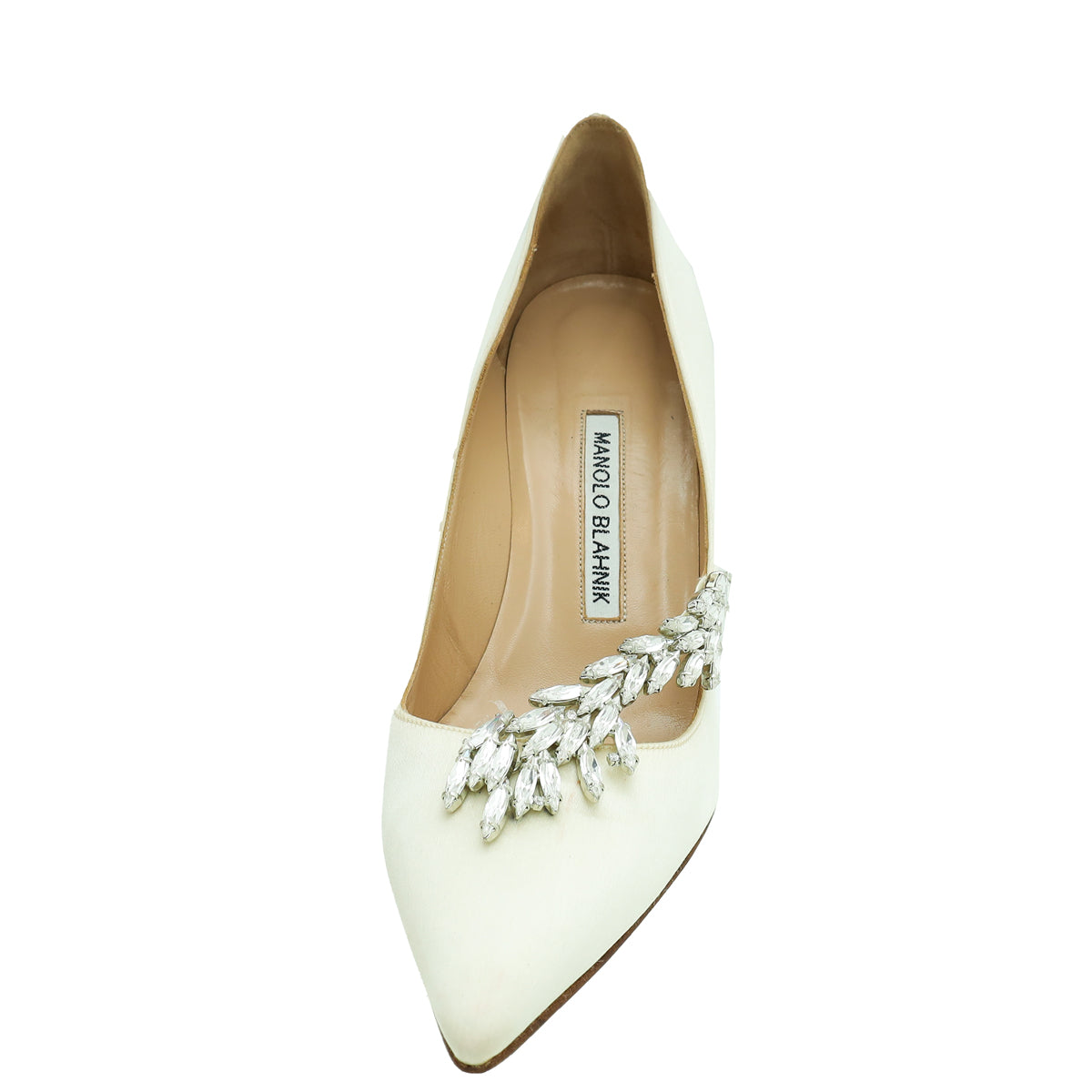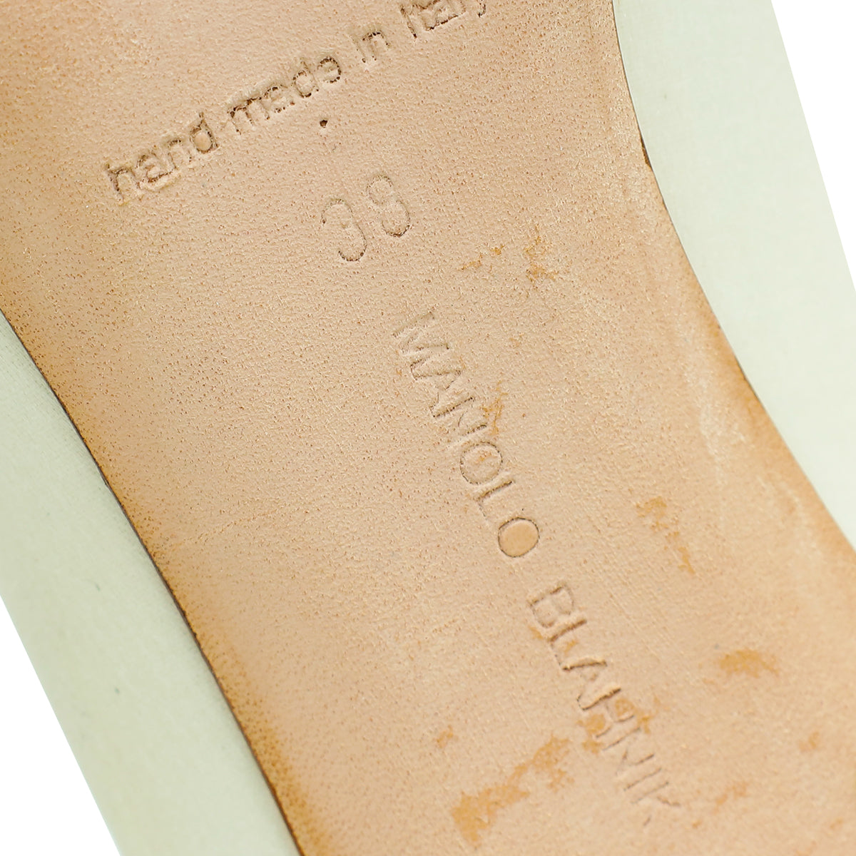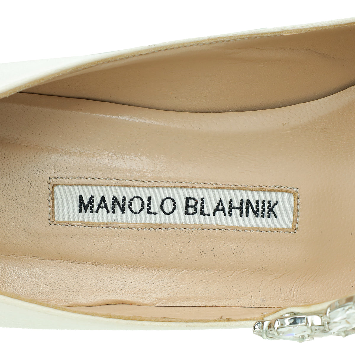 Manolo Blahnik Off White Satin Nadira Pump 38