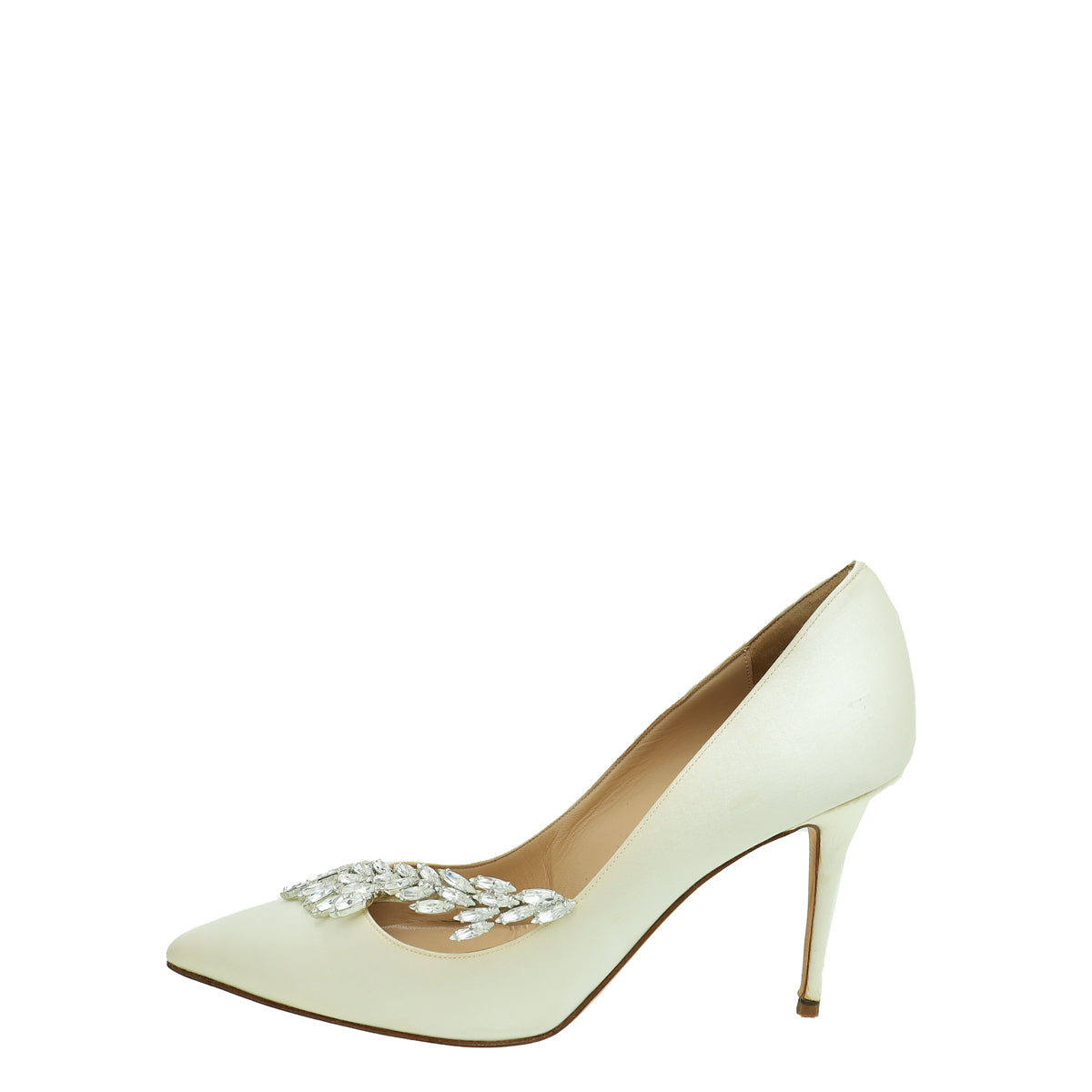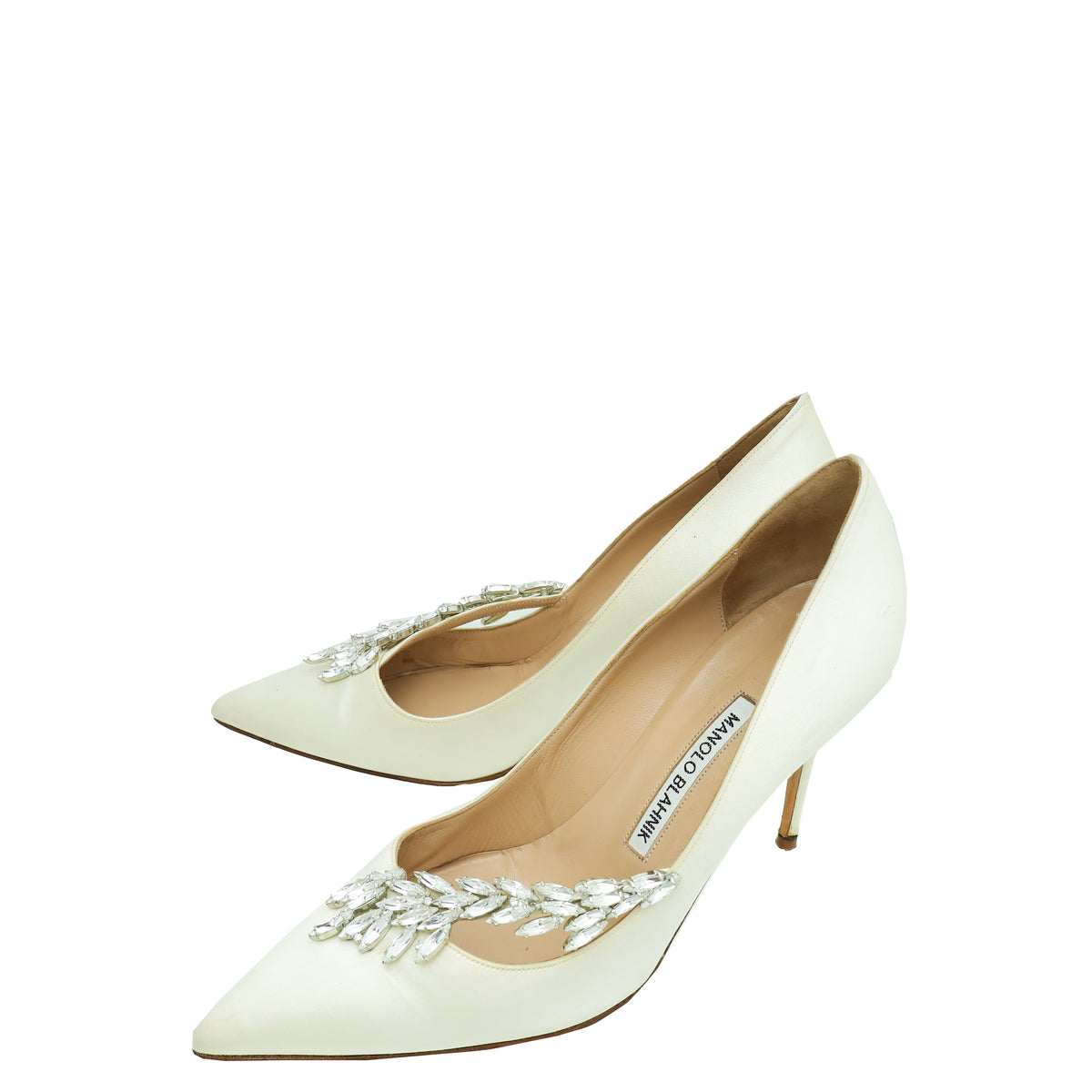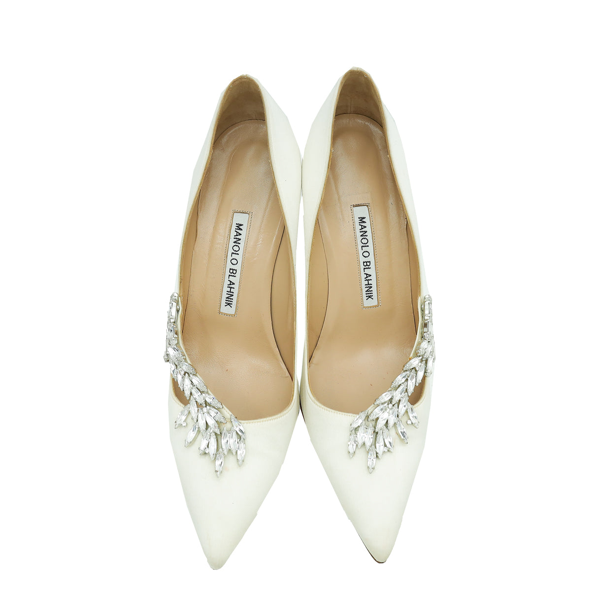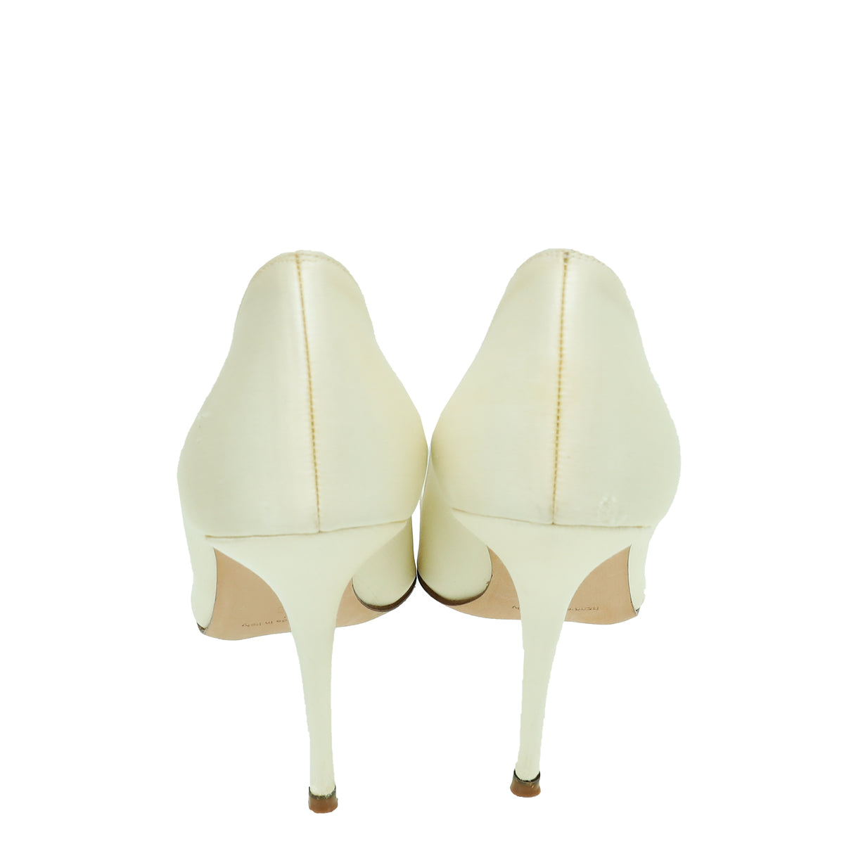Manolo Blahnik Off White Satin Nadira Pump 38