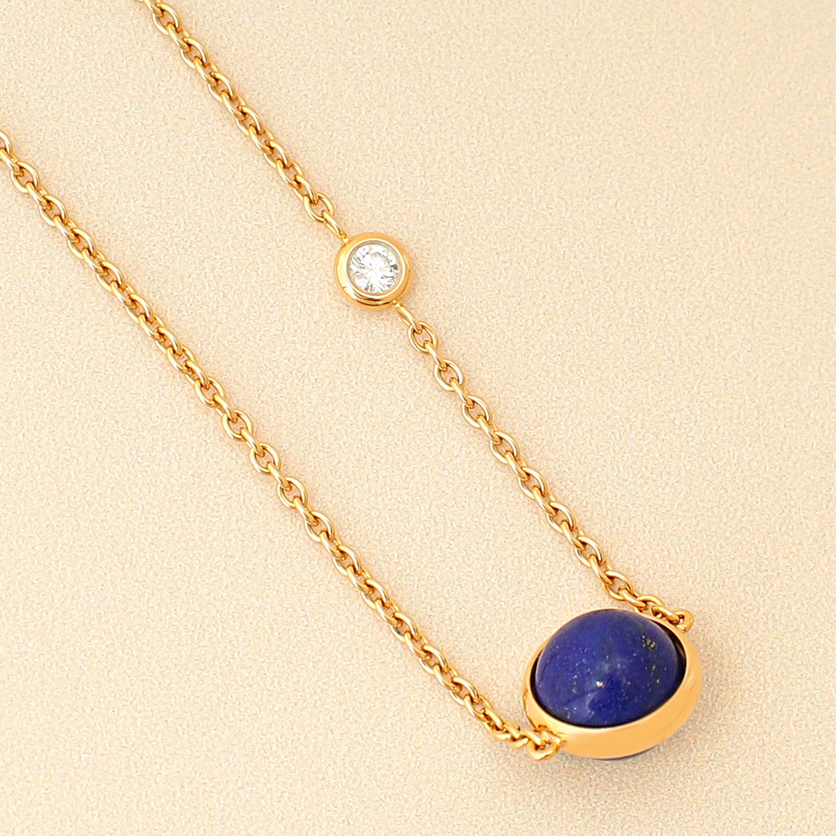 Material: 18K Rose Gold with Blue Lapis Lazuli and 1 Diamond (0.06 Carats) (4.02 gm)