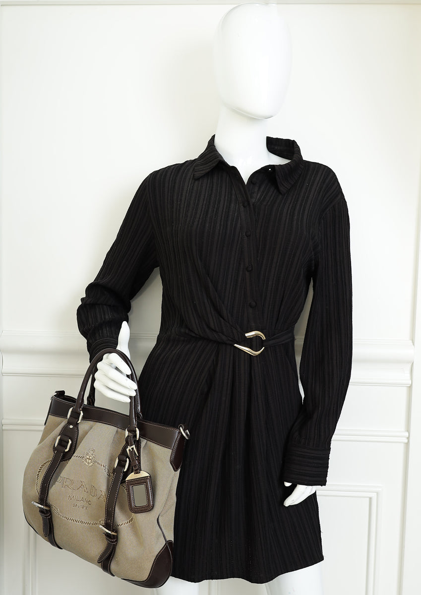 Prada Bicolor Logo Jacquard Hobo Bag