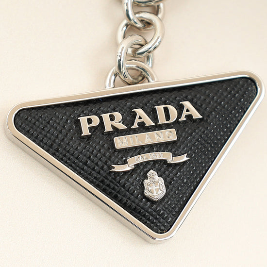 Prada Black Triangle Logo Metal Keychain
