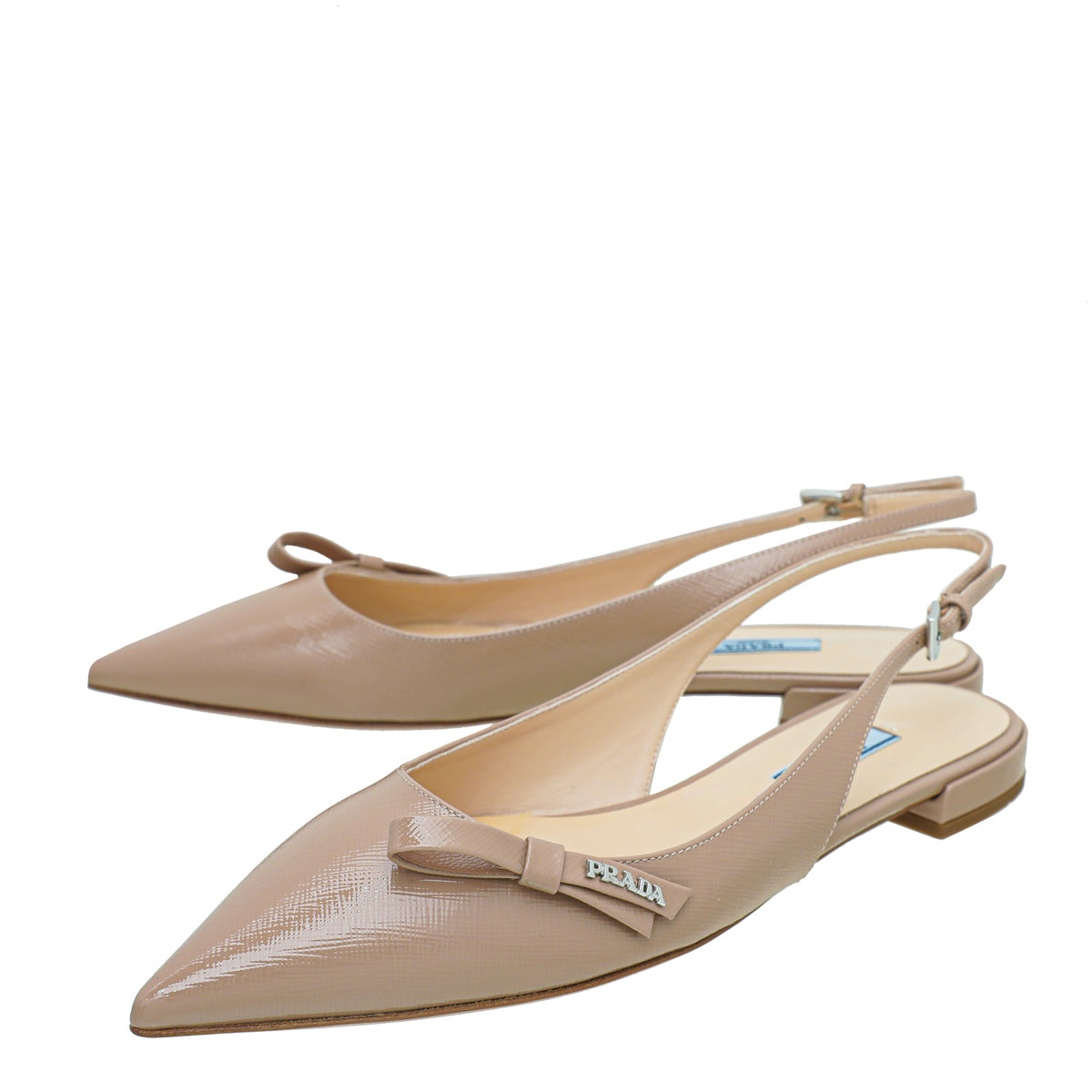 Prada Nude Vernice Bow Flat Slingback 39-Prada-THE CLOSET