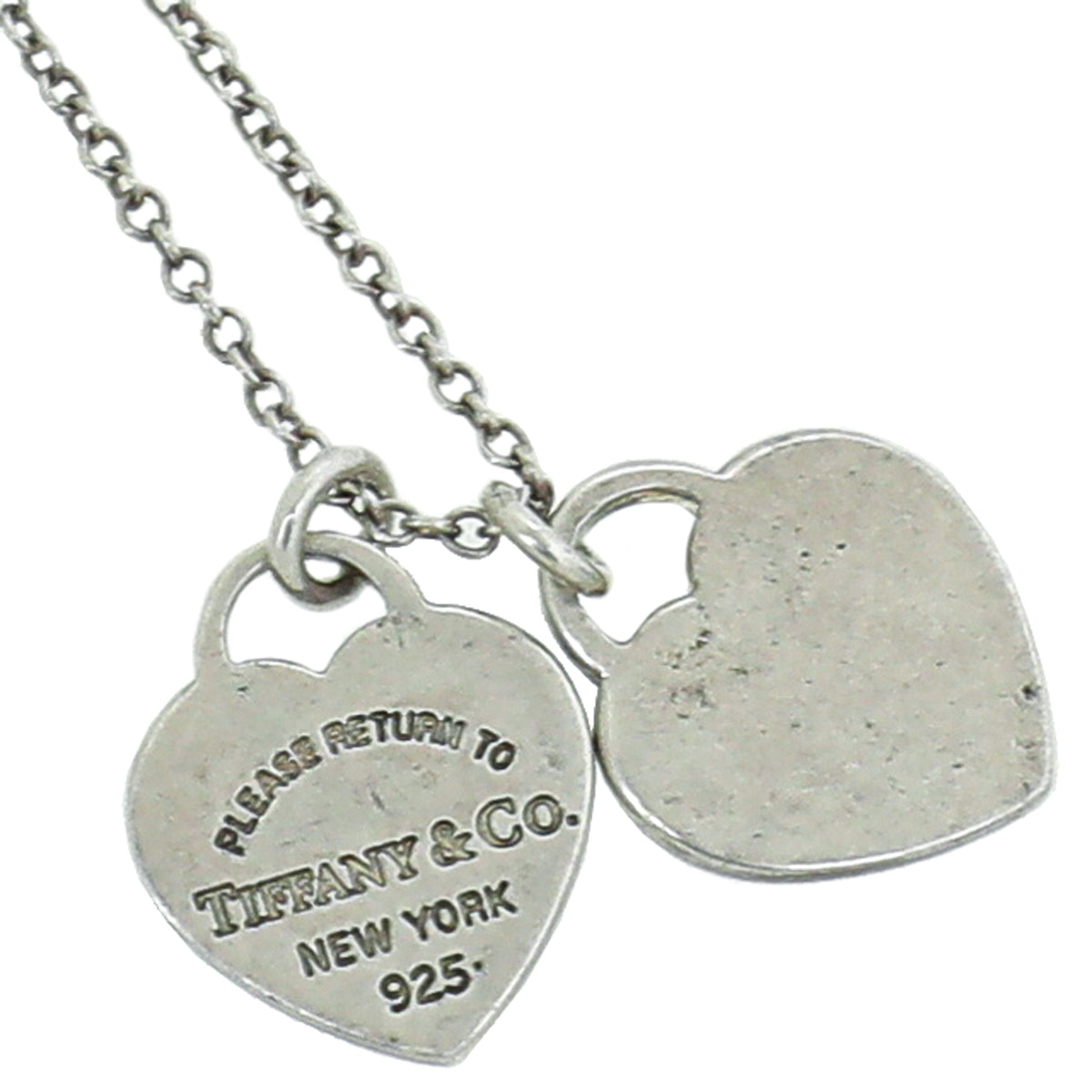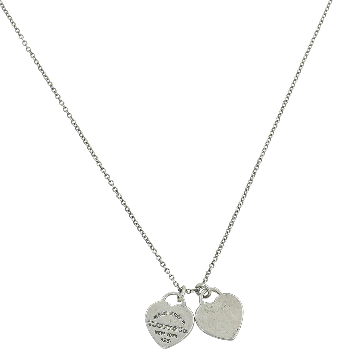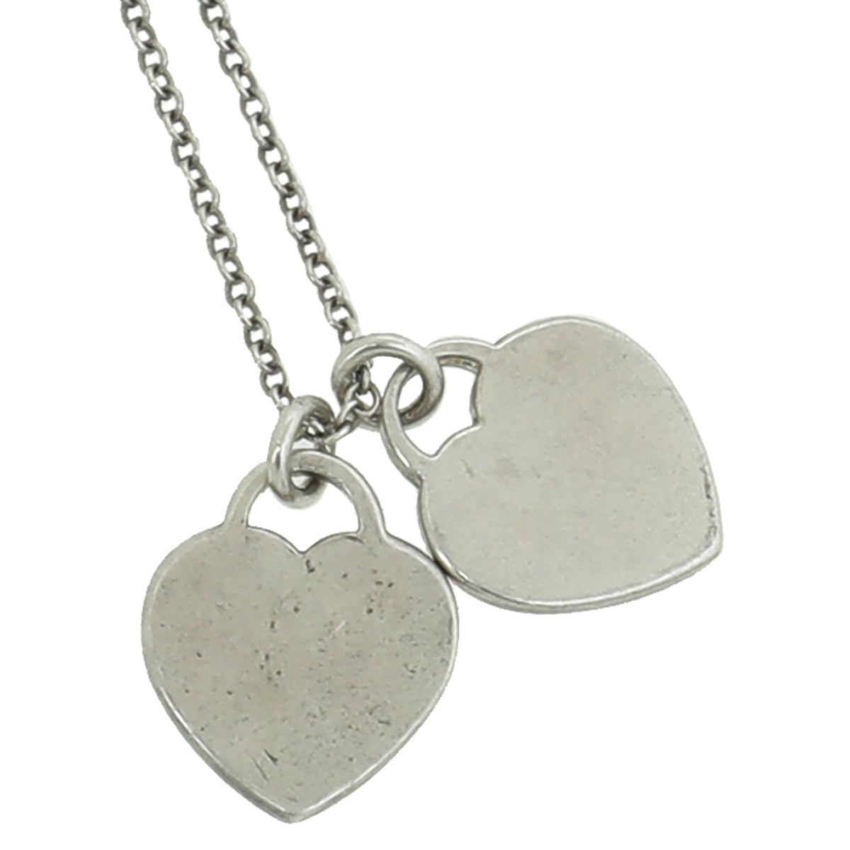 Tiffany & Co Sterling Silver Double Mini Heart Tag Necklace
