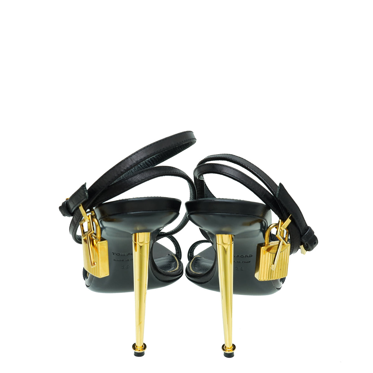 Tom Ford Black Padlock Ankle Strap Sandals 39