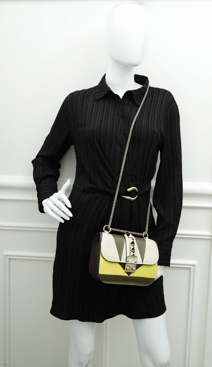Valentino Multicolor Colorblock Rockstud Glam Lock Bag