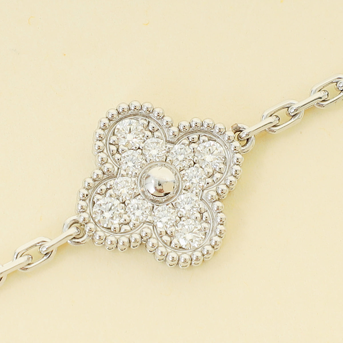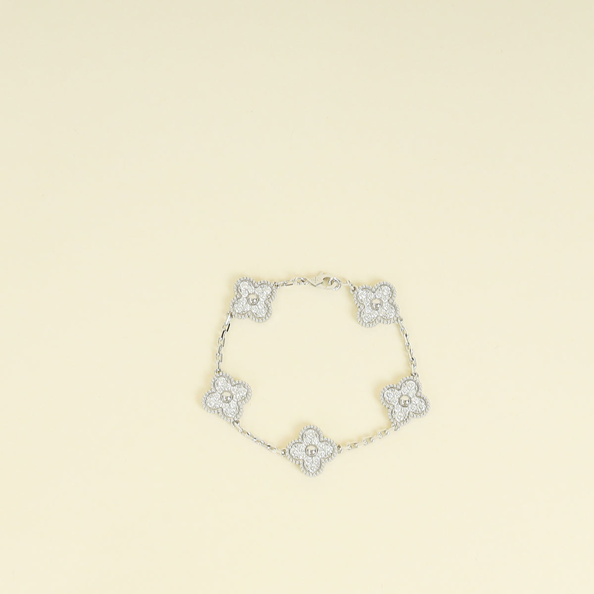 Van Cleef and Arpels 18K White Gold Vintage Alhambra 5 Motifs Diamond Bracelet