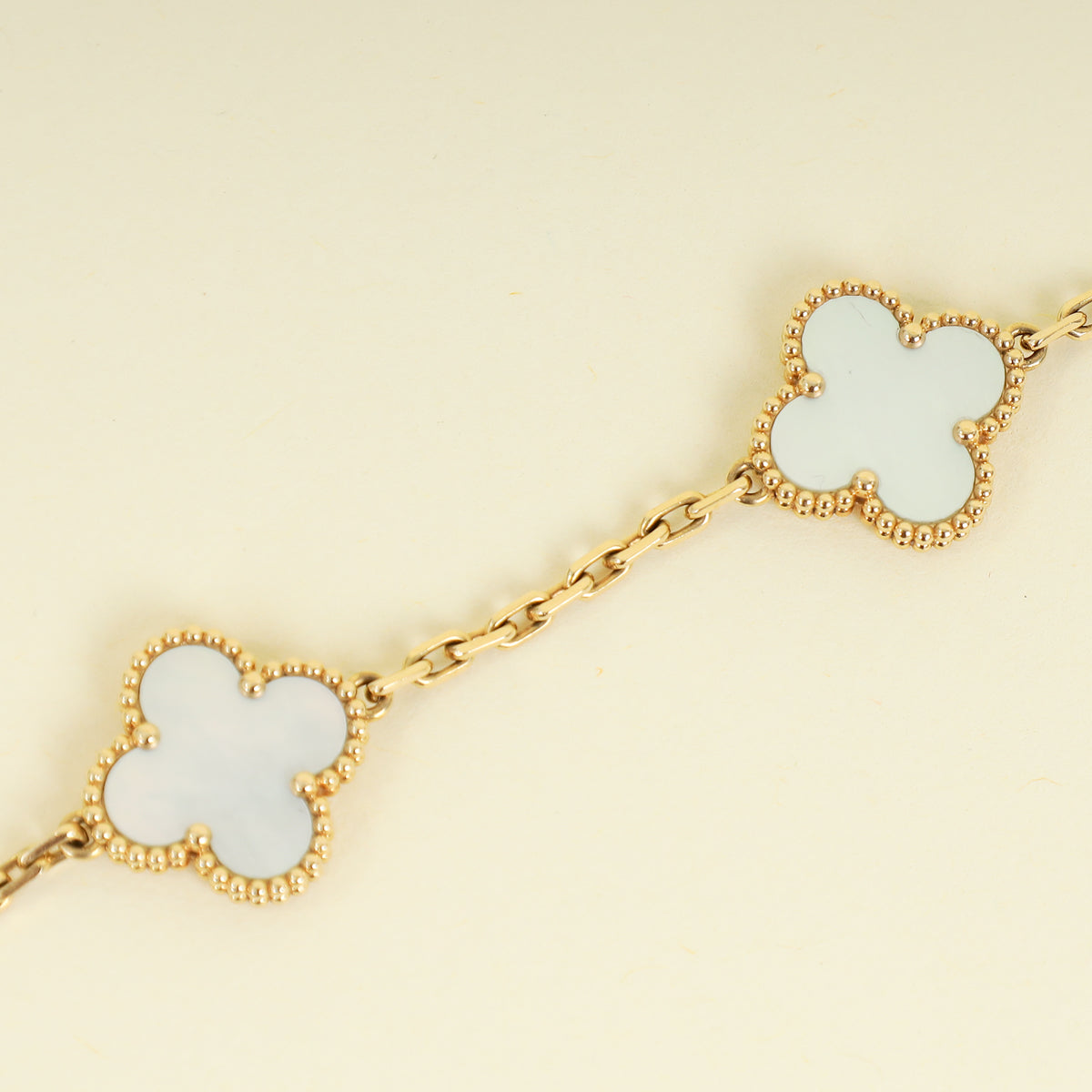 Van Cleef & Arpels 18K Yellow Gold Vintage Alhambra 5 Motifs MOP Bracelet