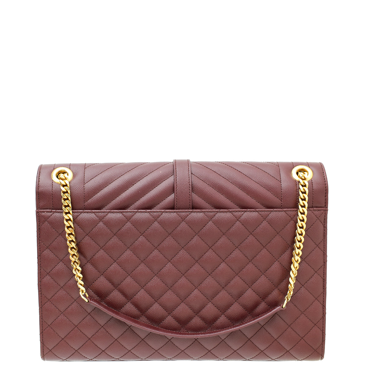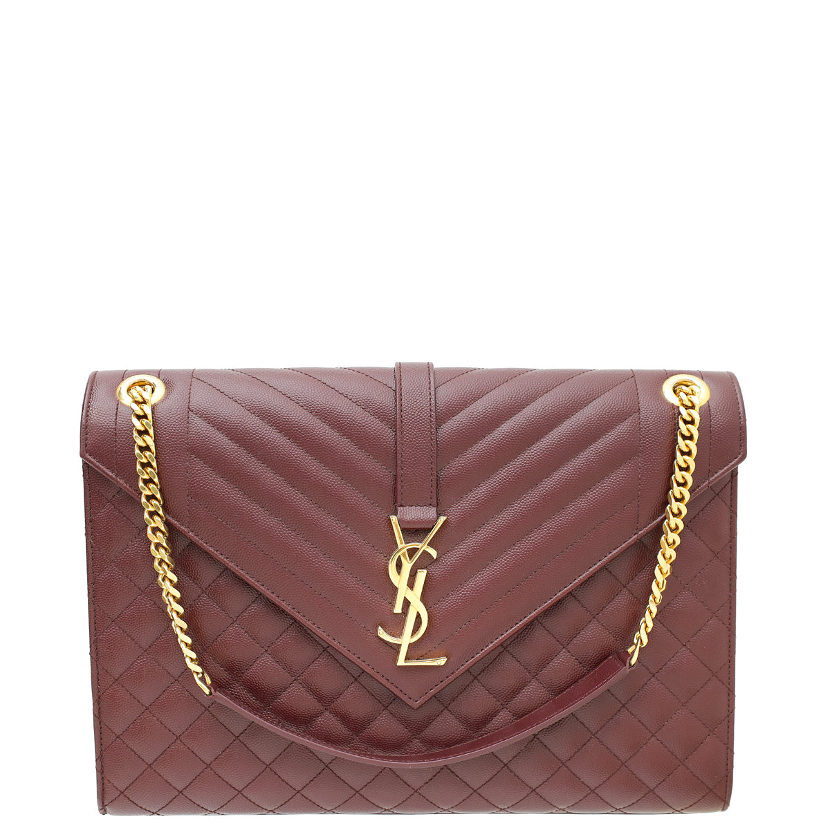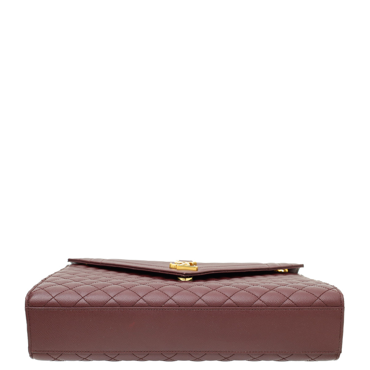 YSL Burgundy Monogram Mix Quilted Envelope Large Shoulder Bag