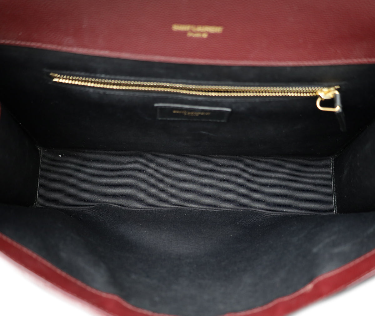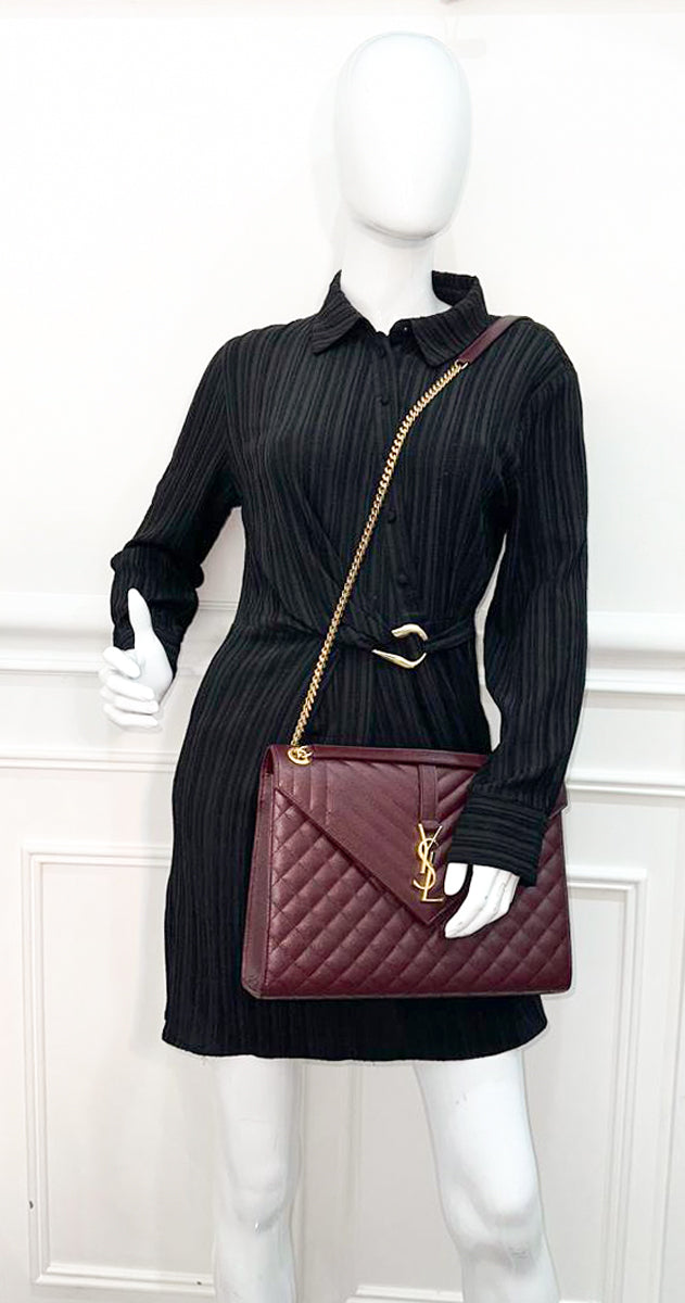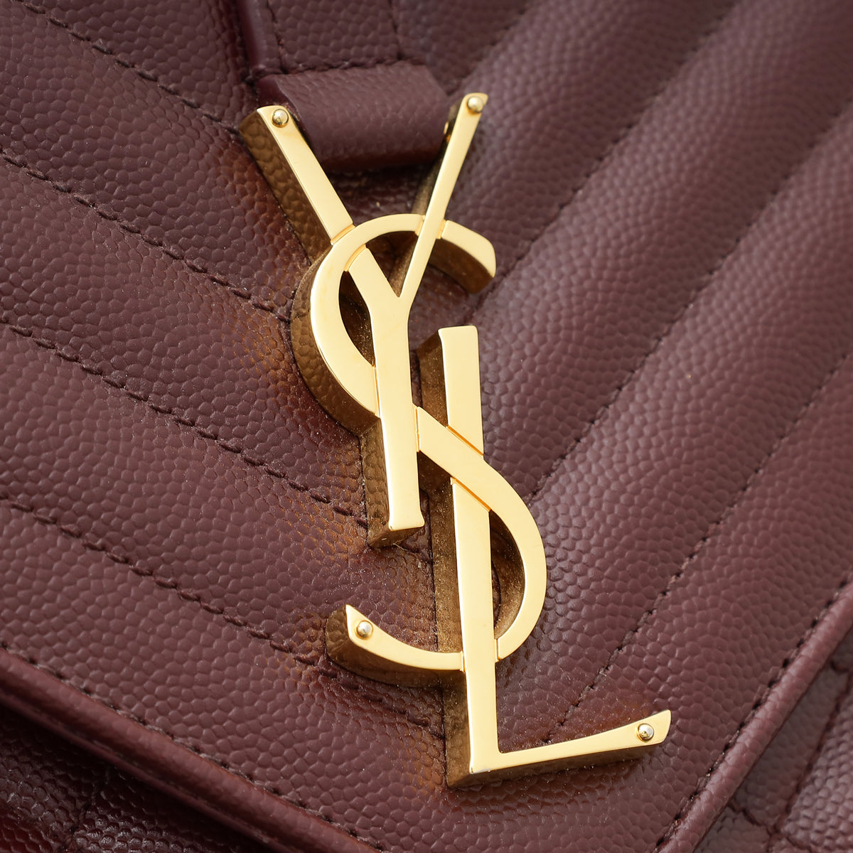 YSL Burgundy Monogram Mix Quilted Envelope Large Shoulder Bag