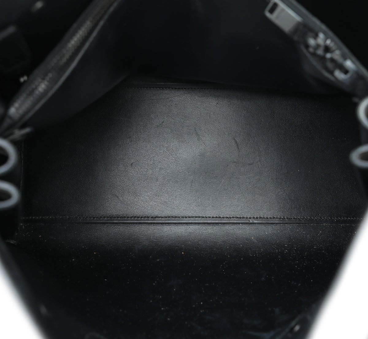 Exterior: good condition, with scratches on the hardware, corners, spots on leather and showing normal signs of use.