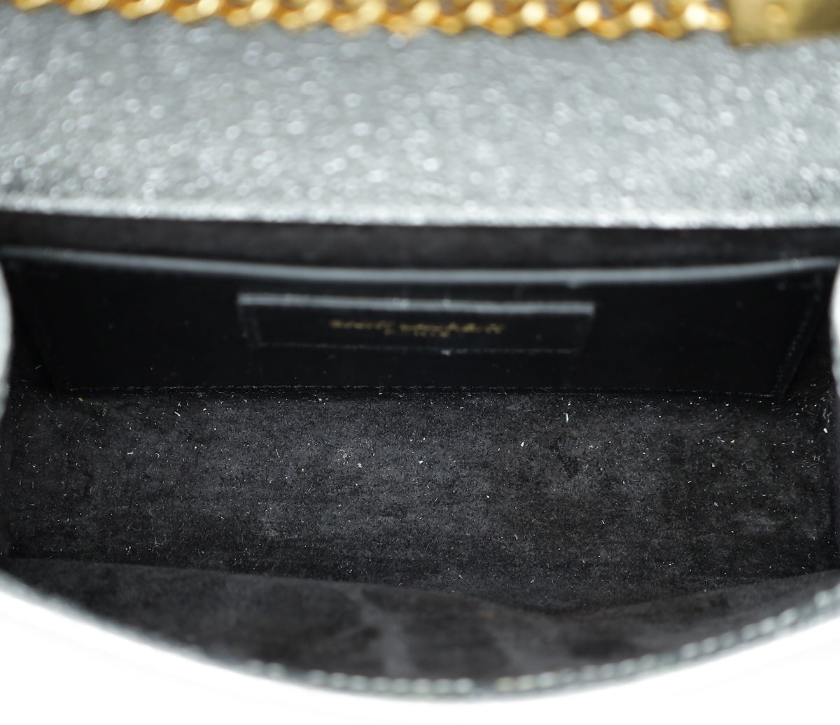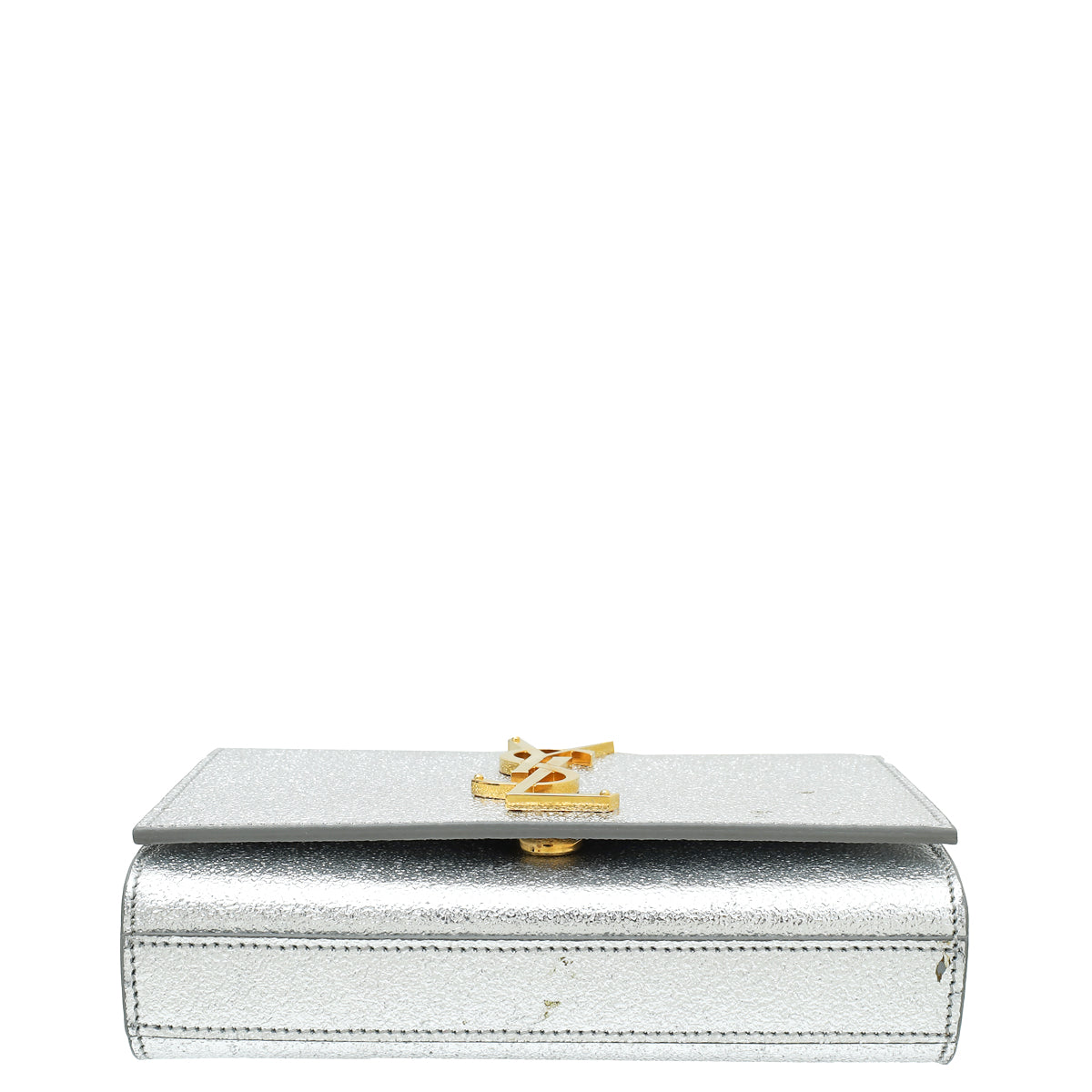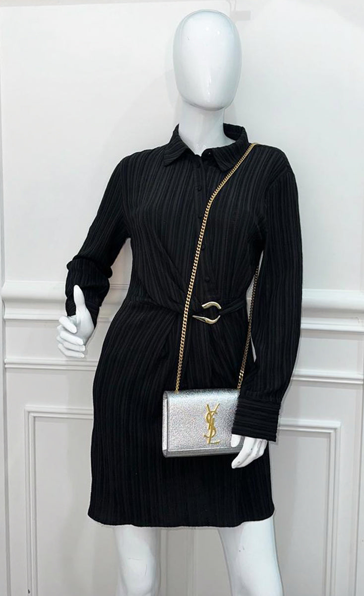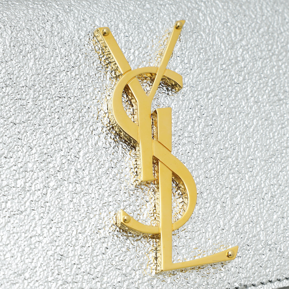 YSL Metallic Silver Monogram Kate Mini Shoulder Bag