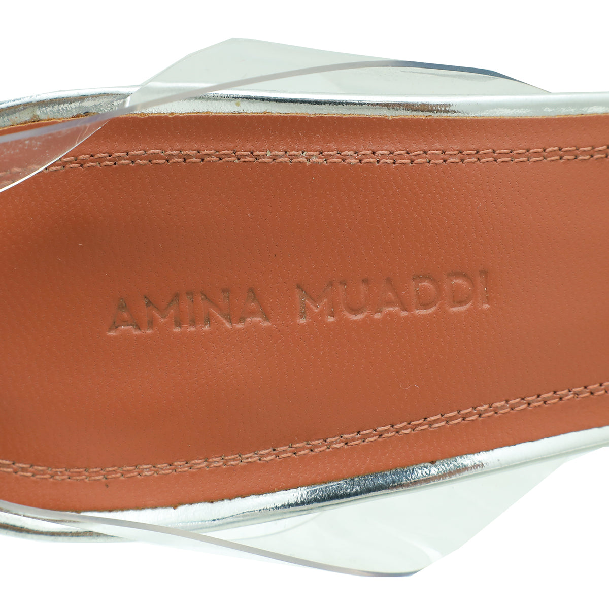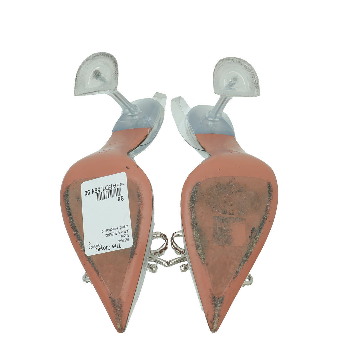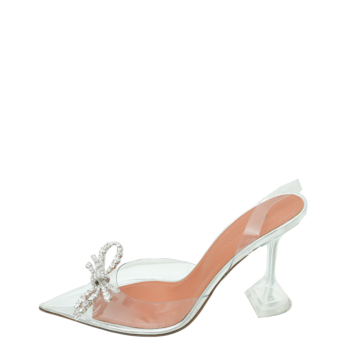 Amina Muaddi Clear Rosie Glass Crystal Bow PVC Pump 38