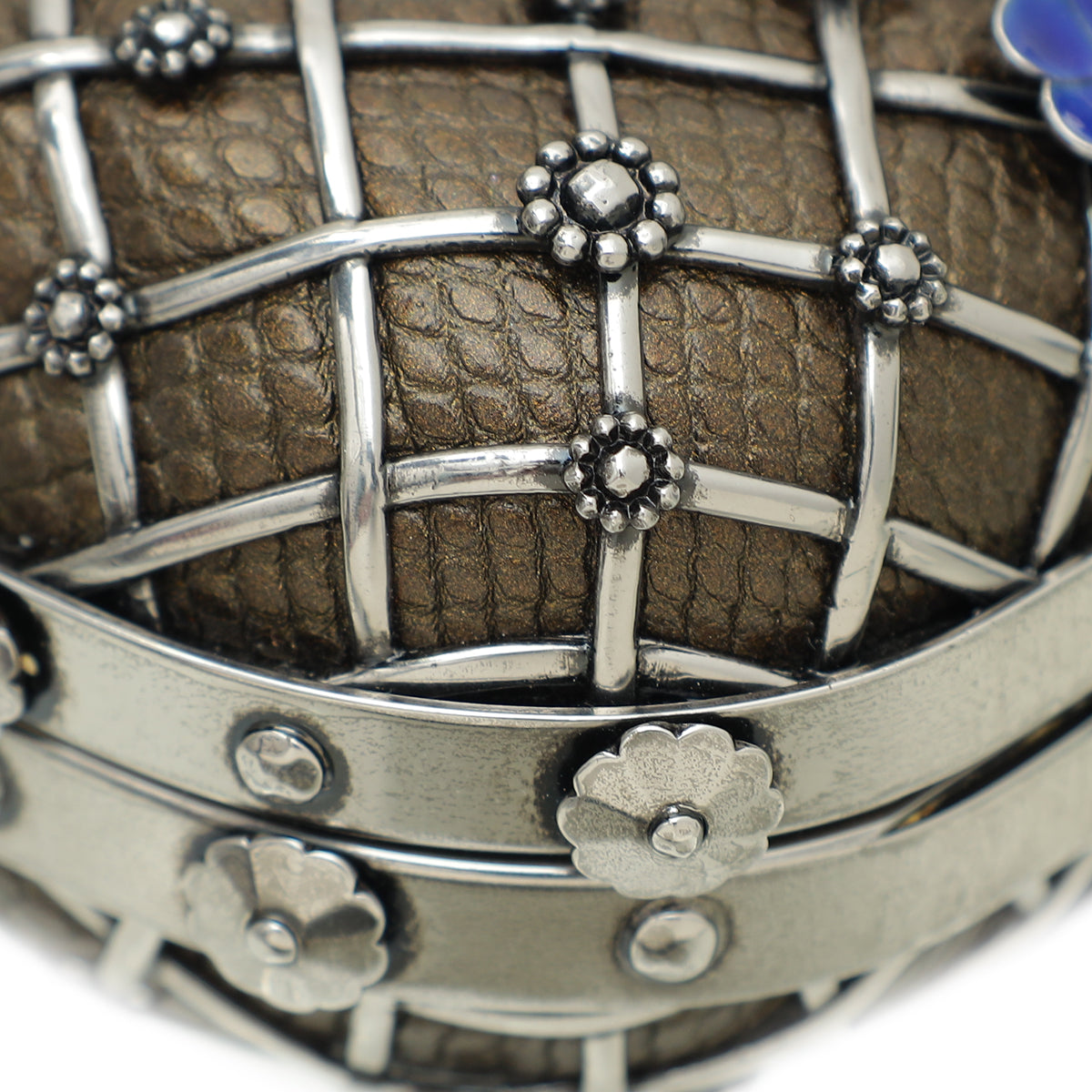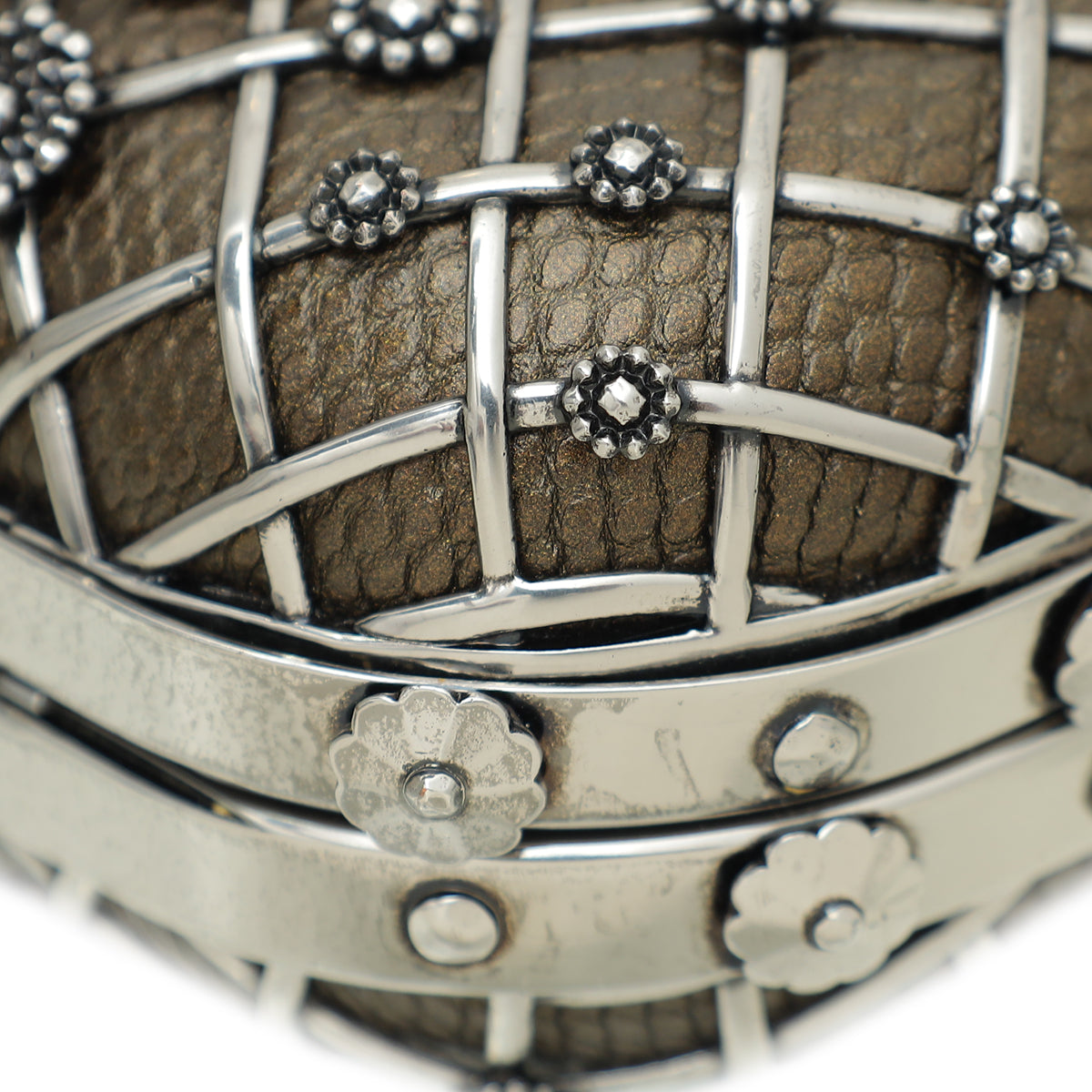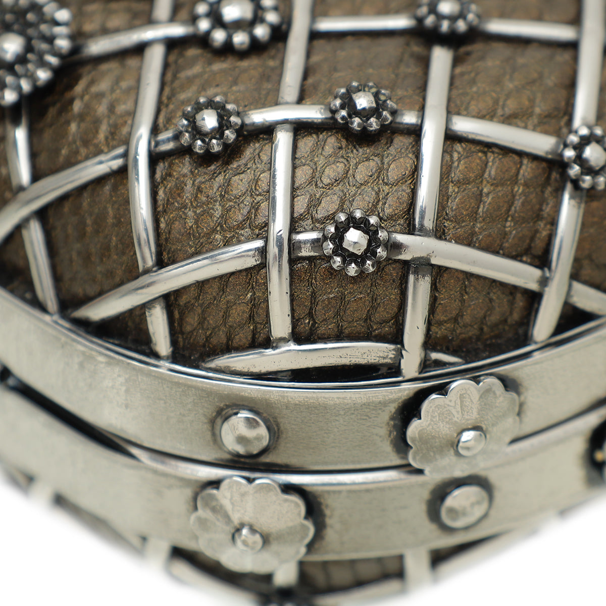 Material: Antique Brass Karung Leather and Metal with Flower Embellishments