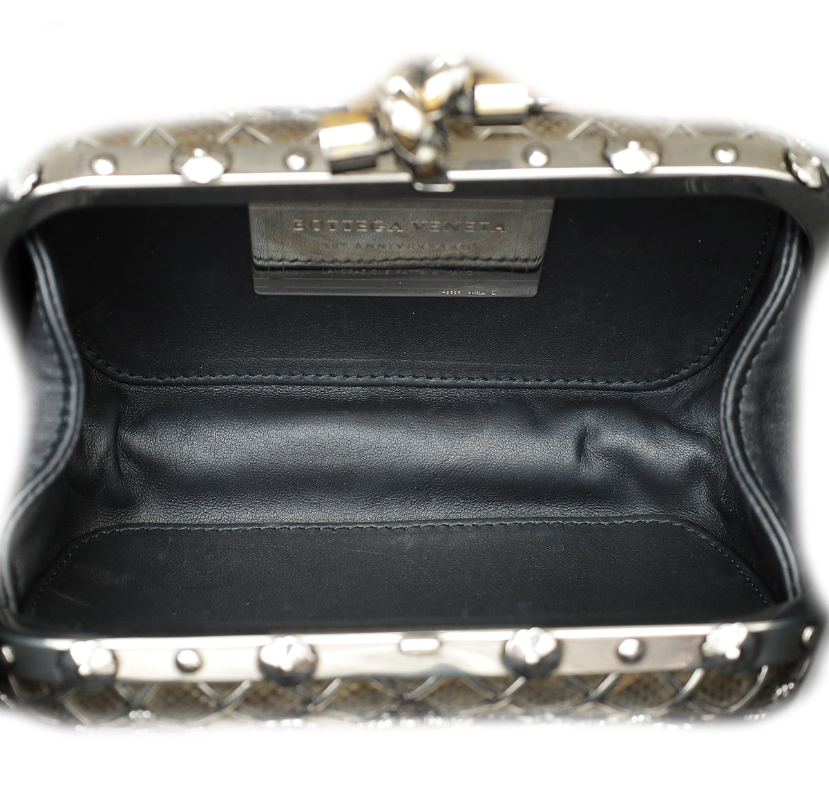 Bottega Veneta Antique Brass Karung Metal Embellished Knot Clutch