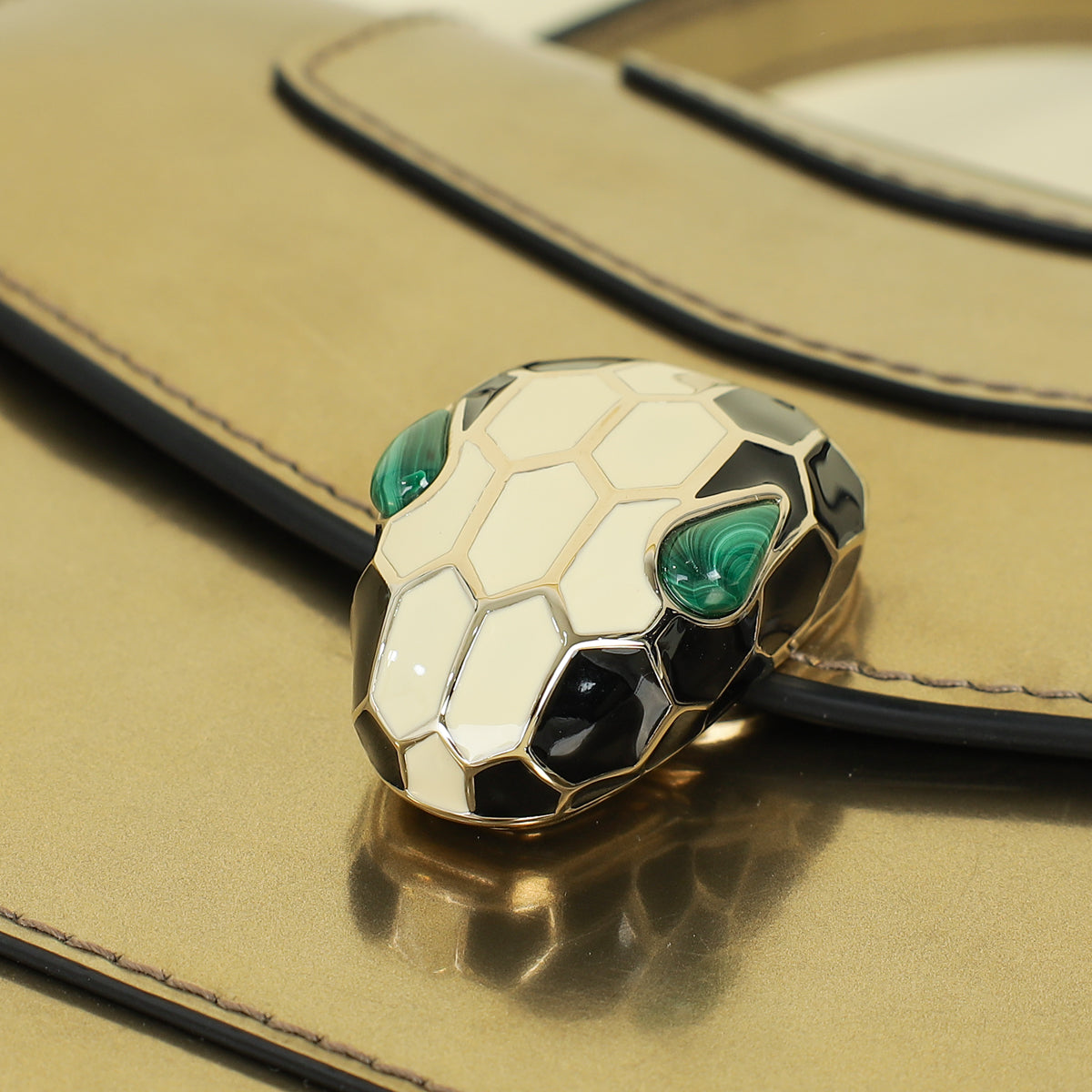 - Material: Brushed Calf Leather with Black and White Enamel with Eyes in Green Malachite