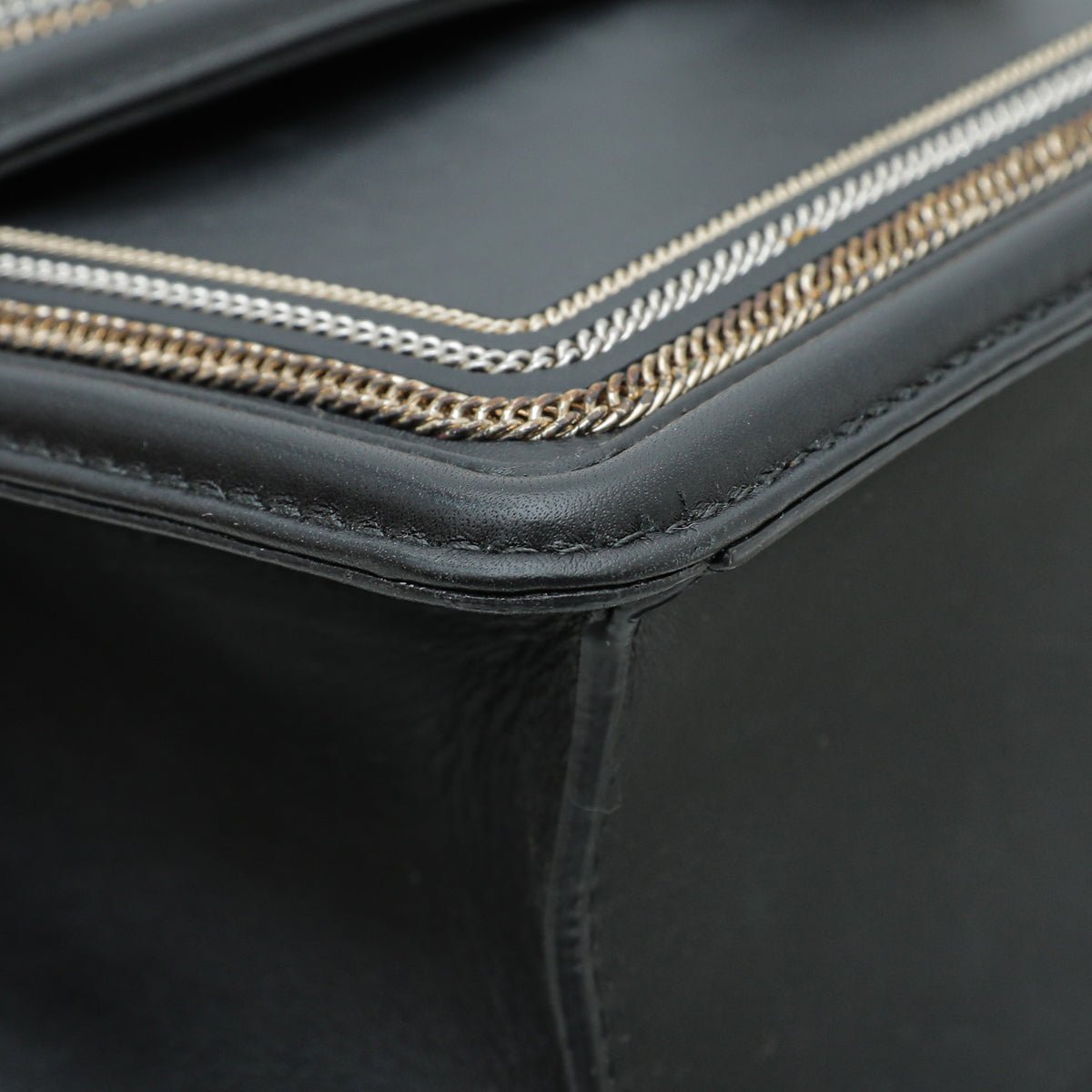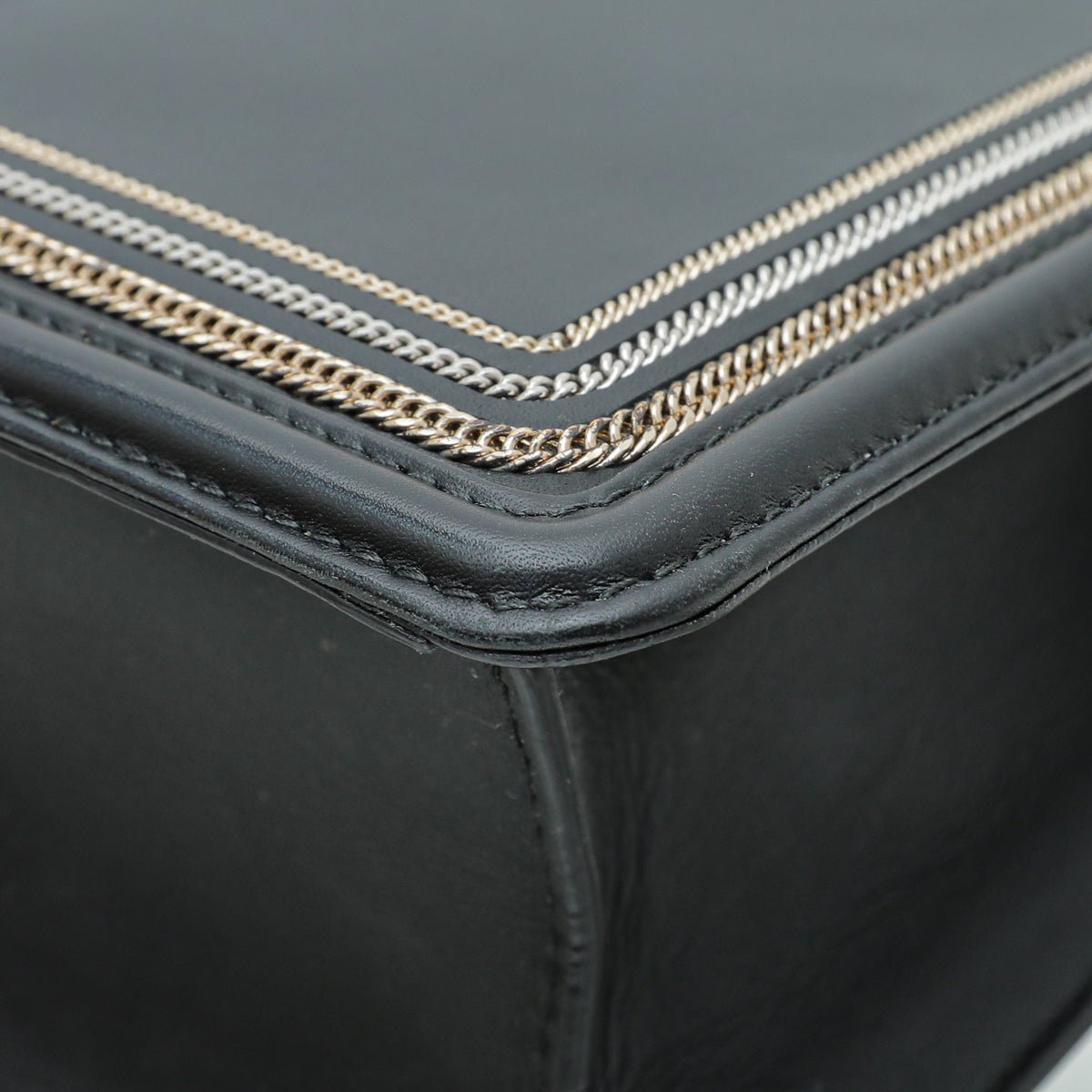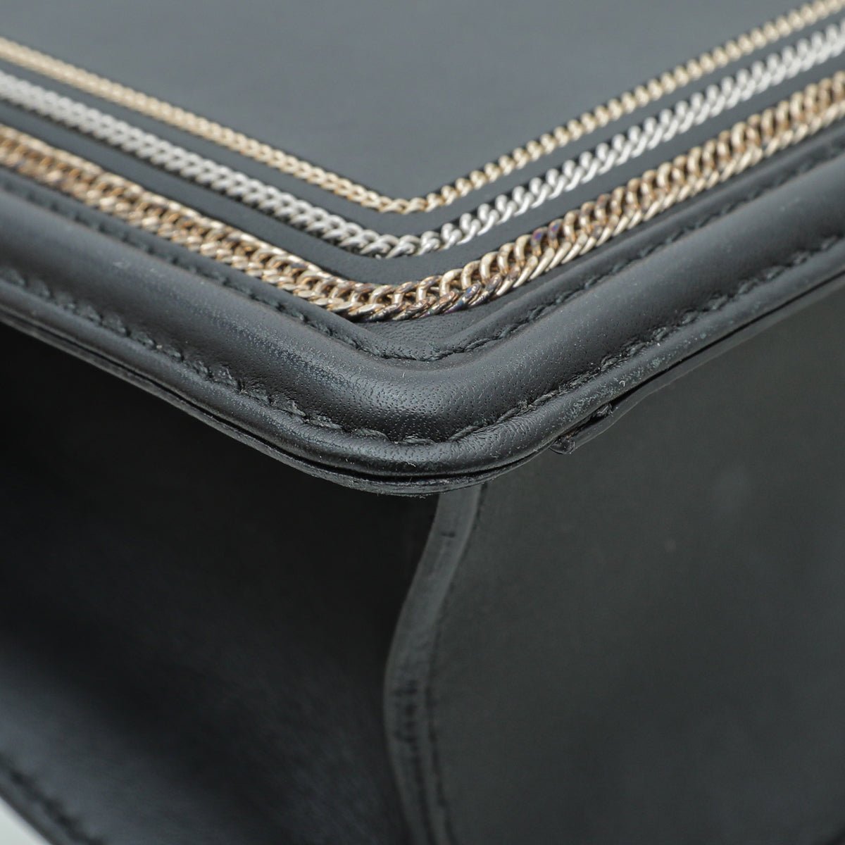 Material: Black Smooth Calf Leather with 3 Chain Embellishment and Black/White Enamel with Black Onyx Eyes