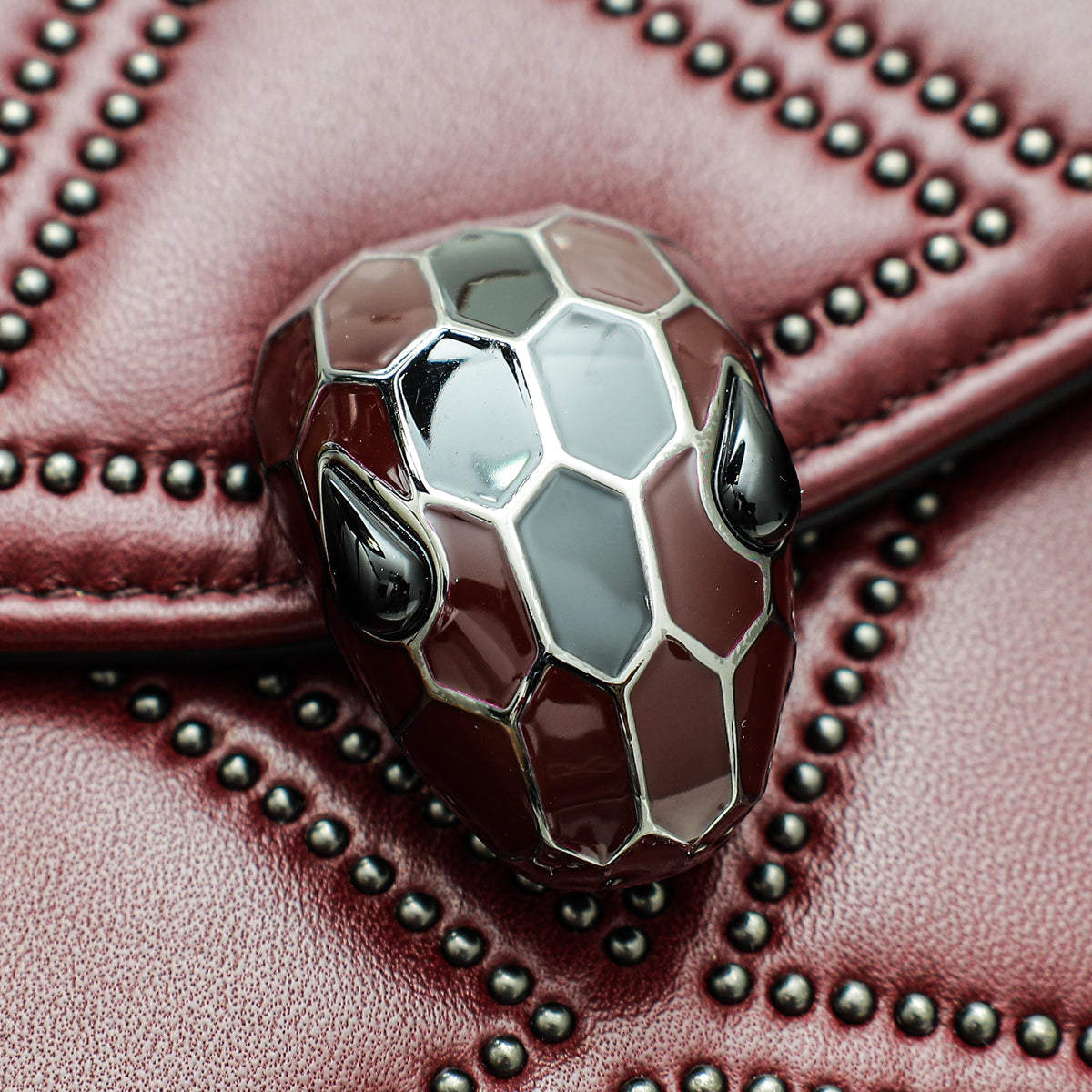 Bvlgari Burgundy Serpenti Forever Studded Small Shoulder Bag