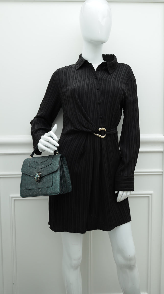 Bvlgari Green Karung Skin Serpenti Forever Top Handle Bag