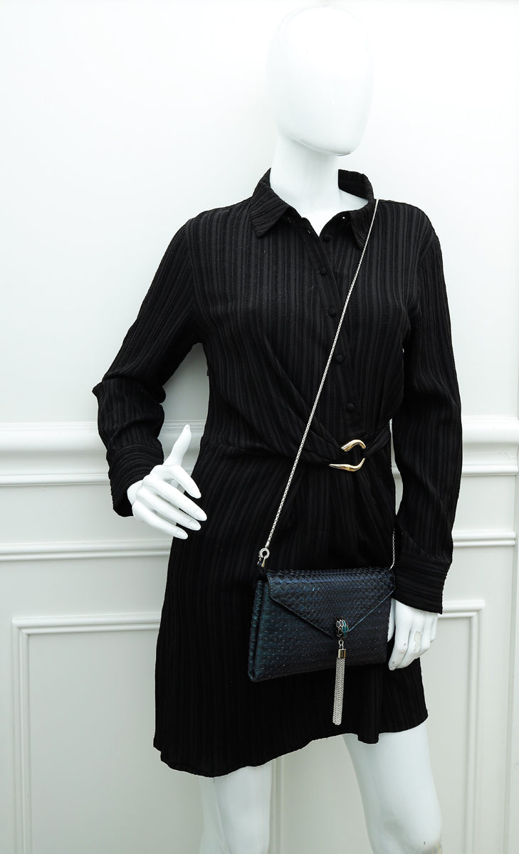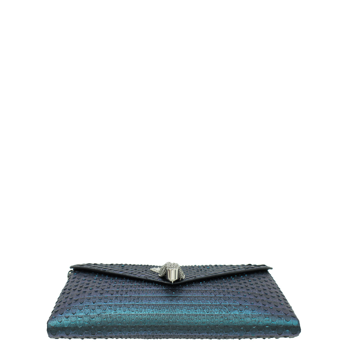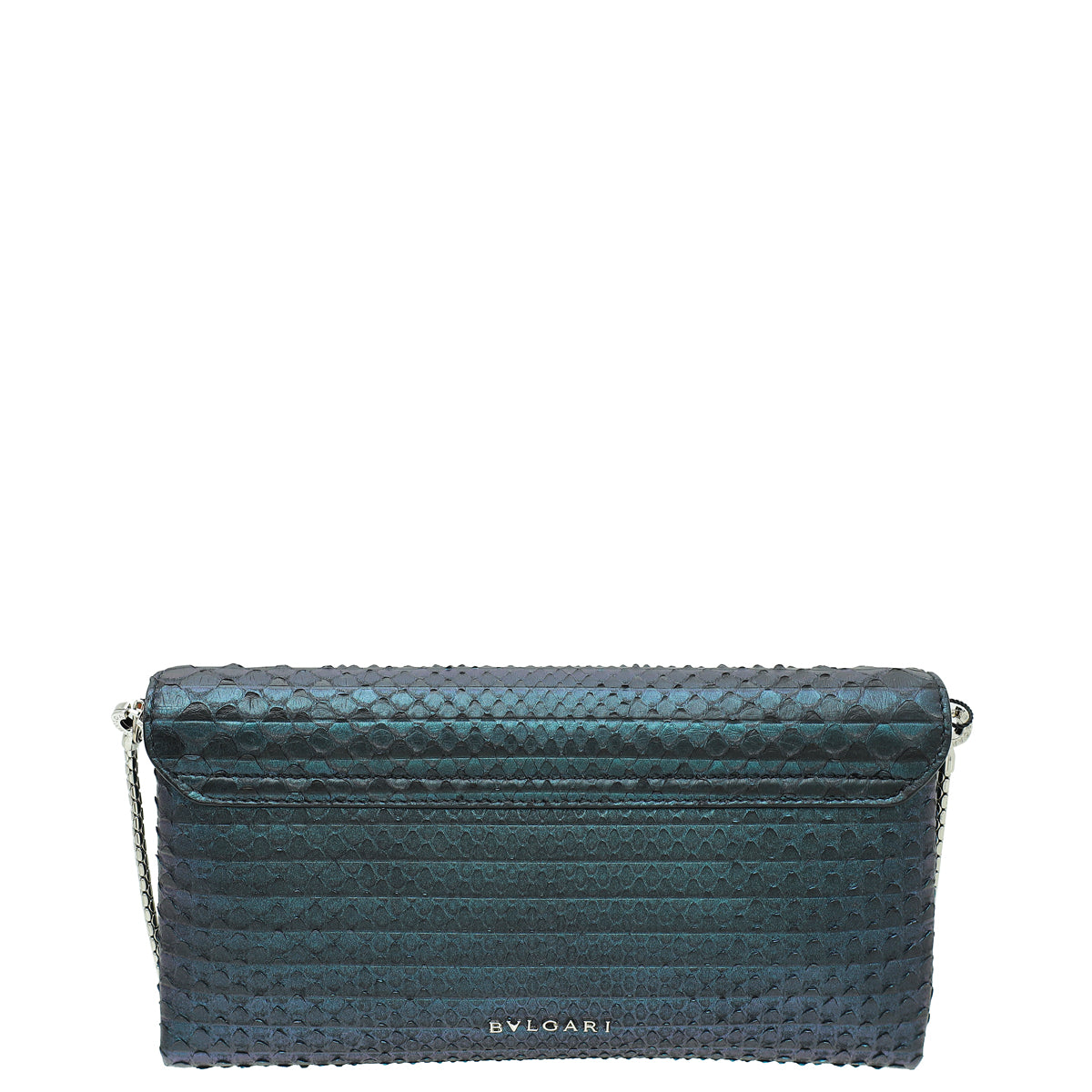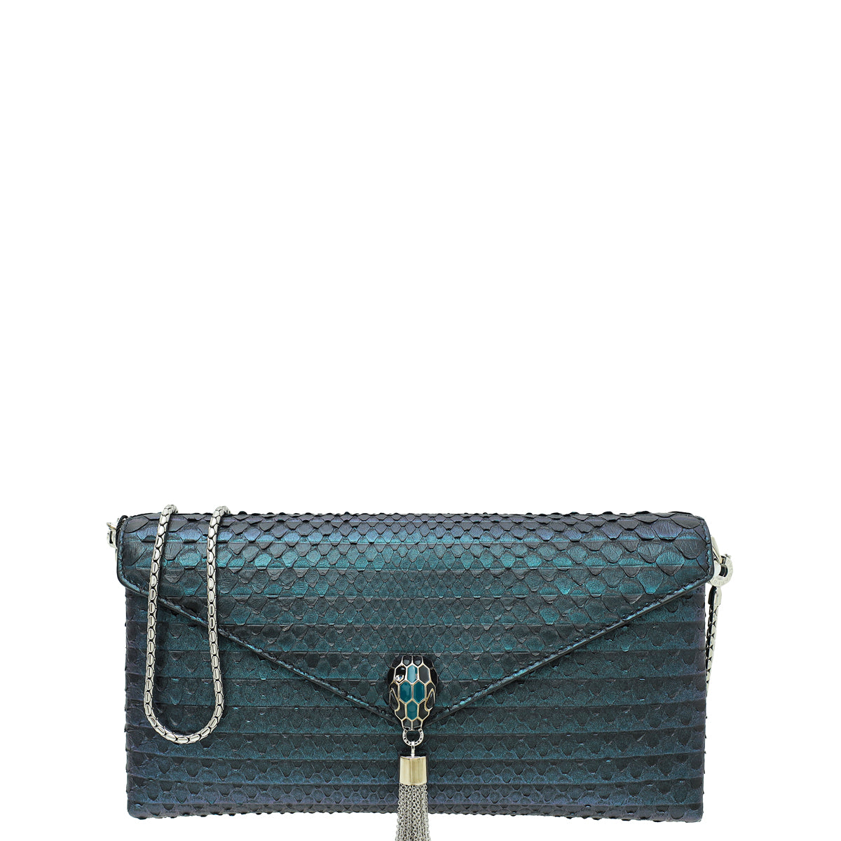 Bvlgari Metallic Teal Python Serpenti Forever Tassel Clutch