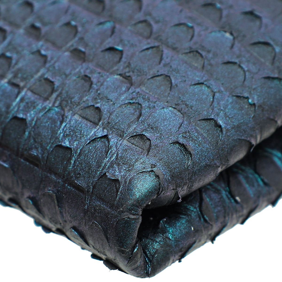 Material: Metallic Teal Python Leather with Black and Teal Enamel Black Onyx Eyes