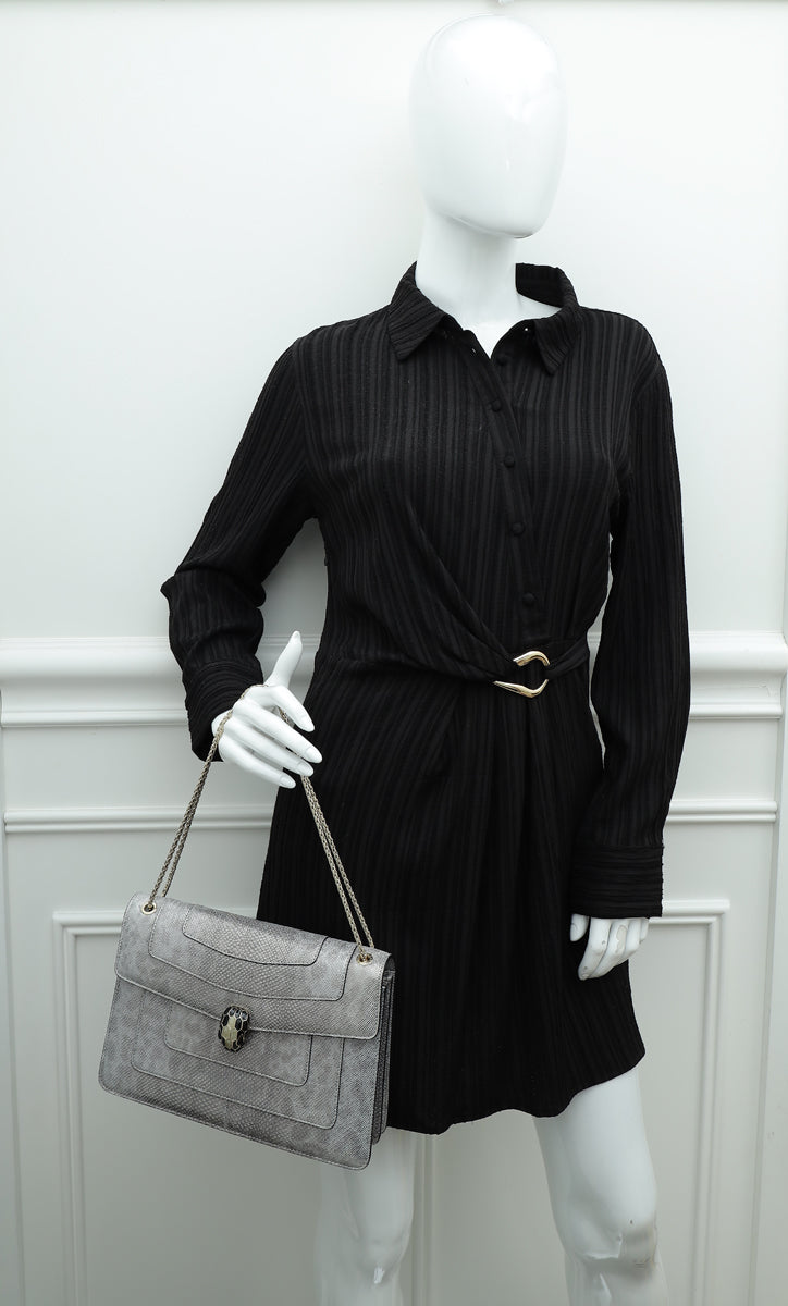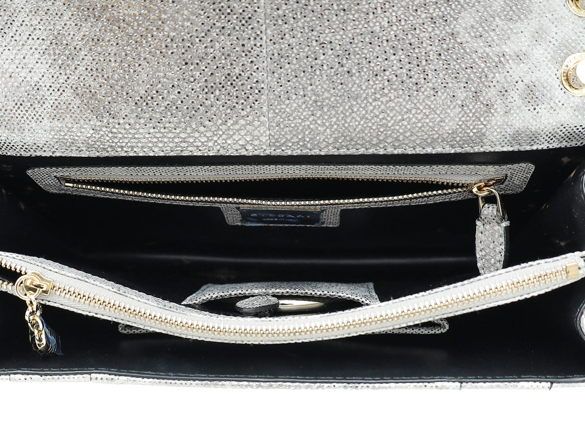 Bvlgari Serpenti Metallic Grey Karung Forever Medium Shoulder Bag