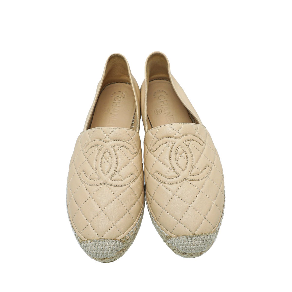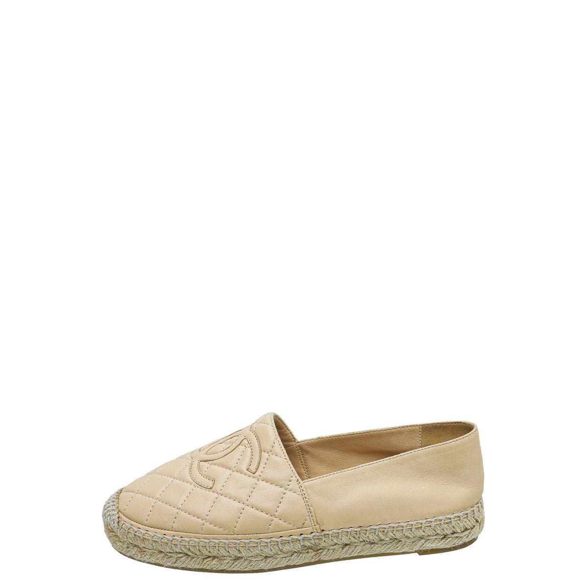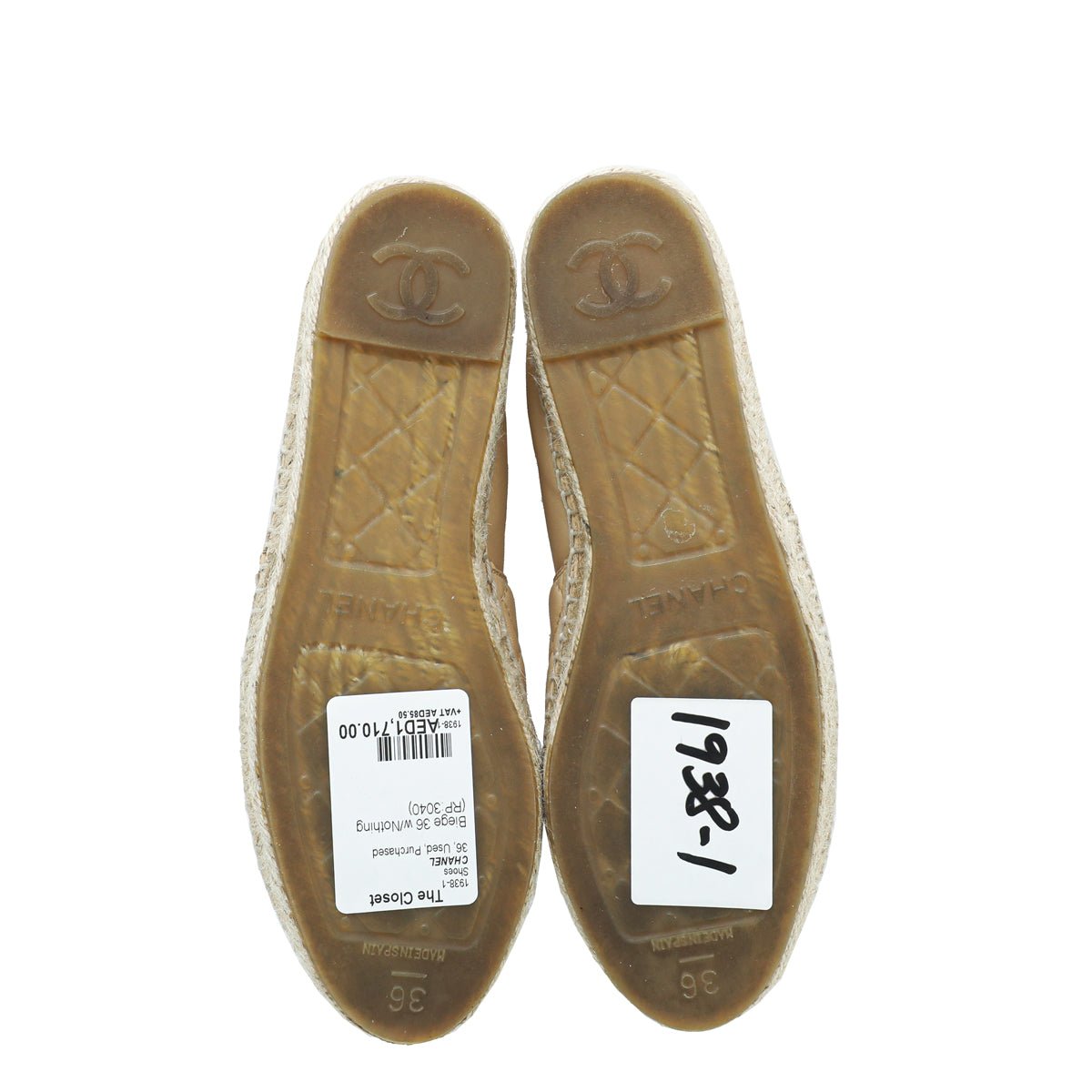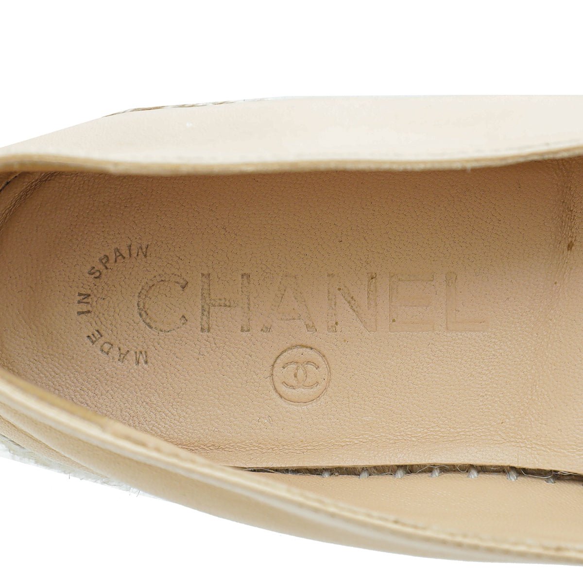 Chanel Beige CC Crochet Cap Toe Espadrille 36