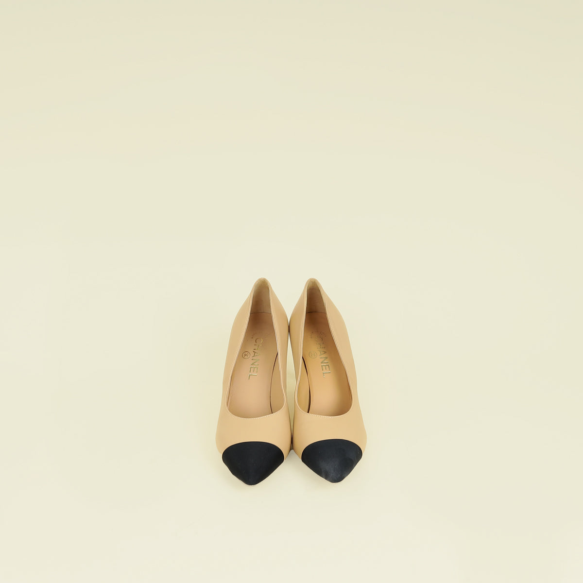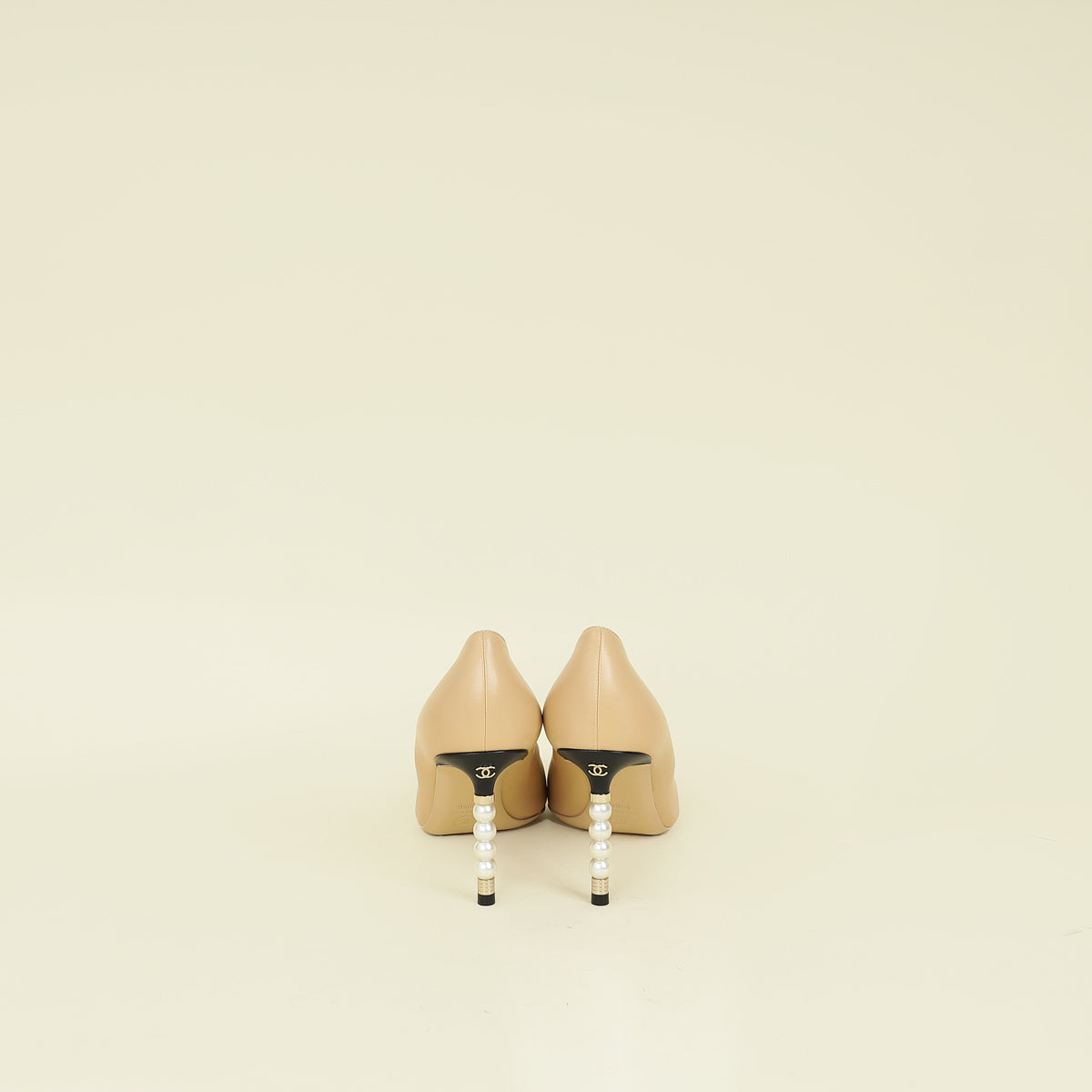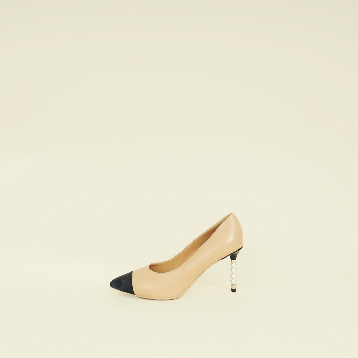 Chanel Bicolor Pearl Heel Pumps 38.5