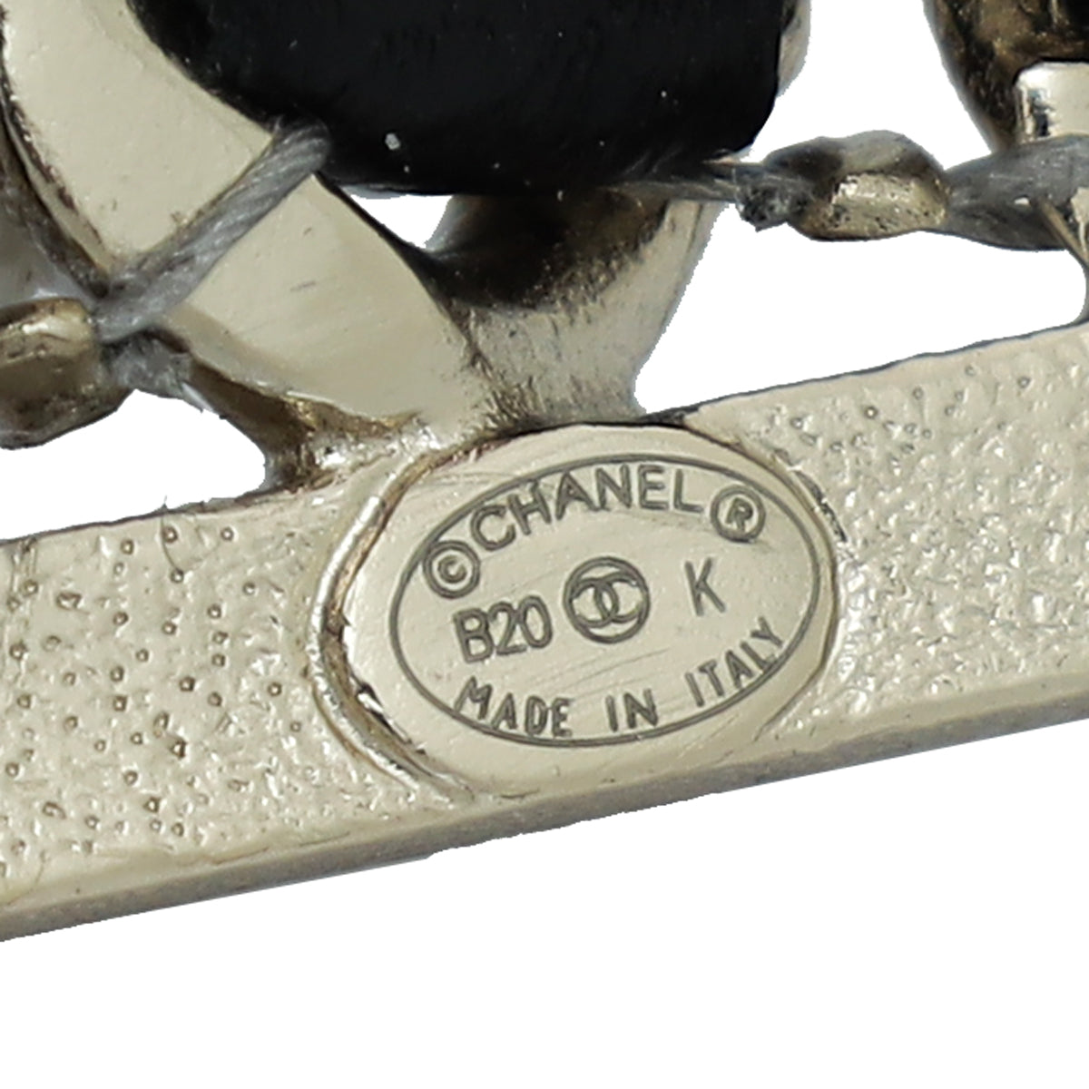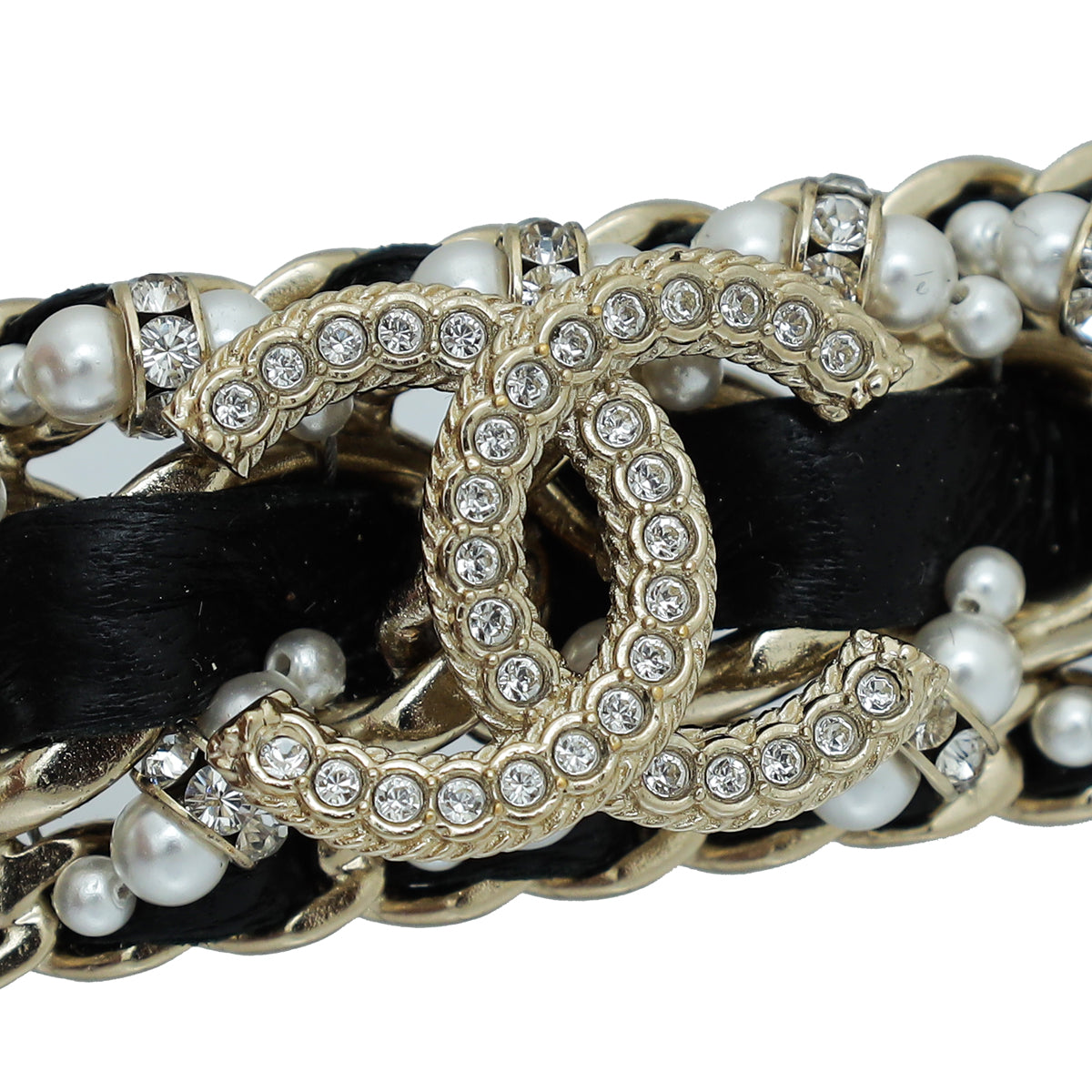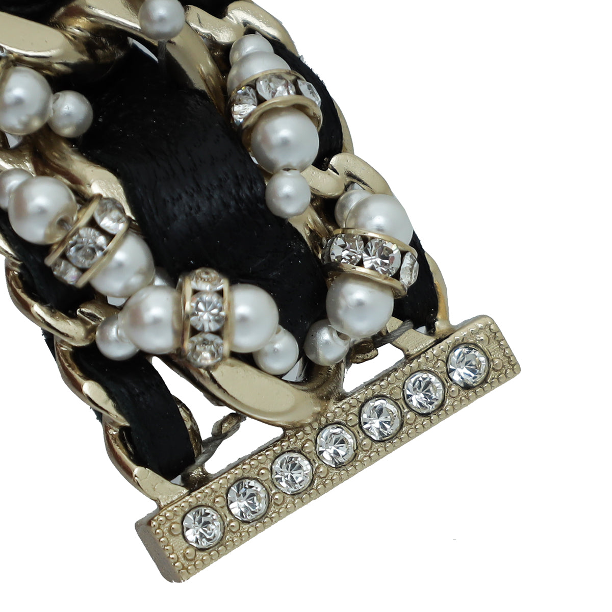 Chanel Black CC Braided Pearl Chain Hair Clip