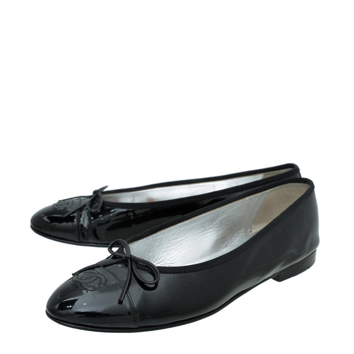 Chanel Black CC Cap Toe Ballerina Flats 40