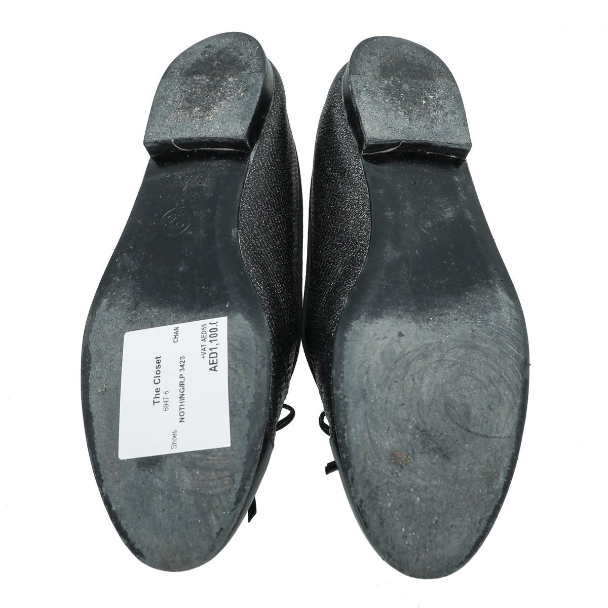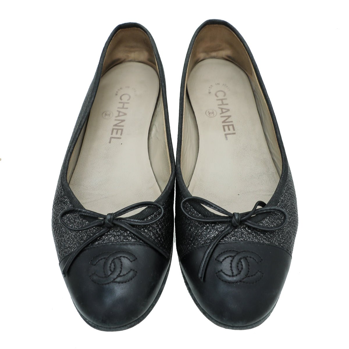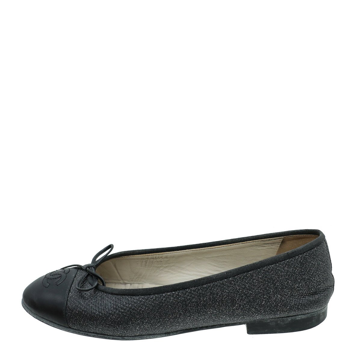 Chanel Black CC Cap Toe Bow Flat Ballerina 37.5-Chanel-THE CLOSET