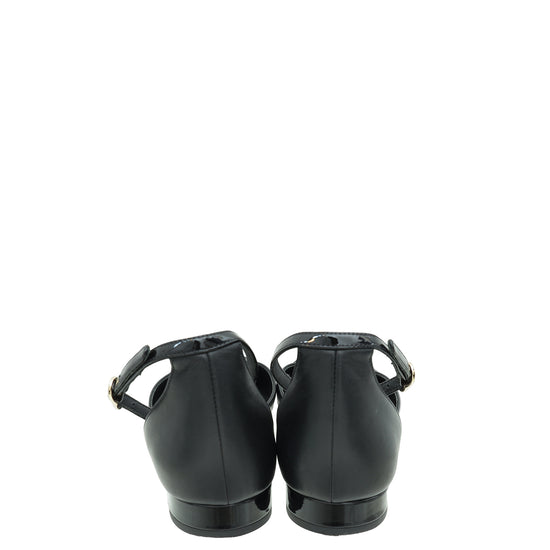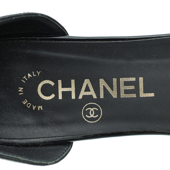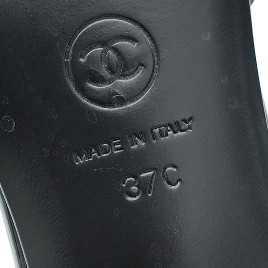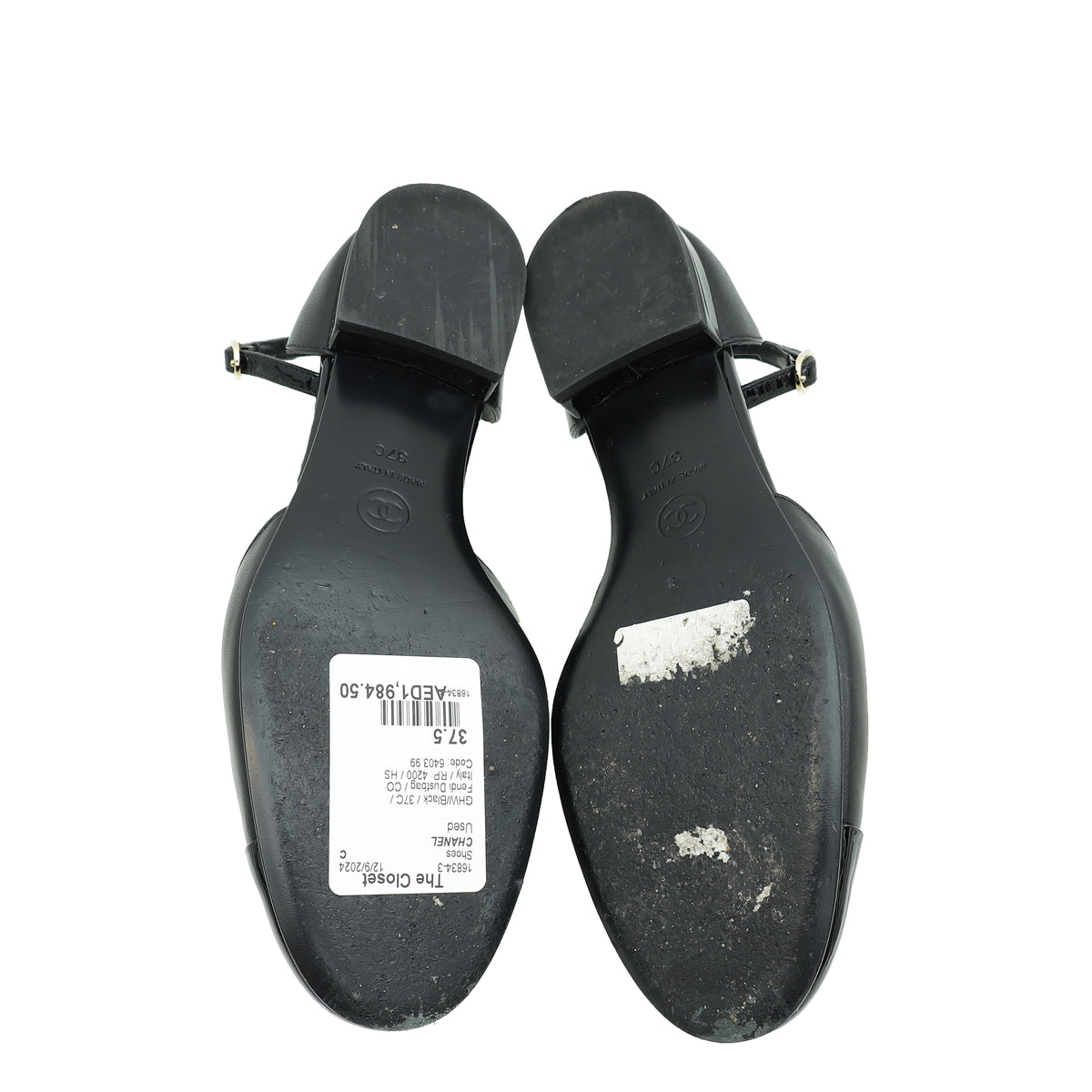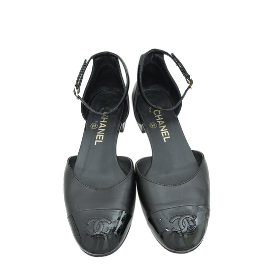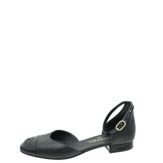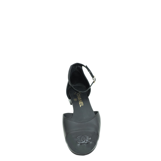 Chanel Black CC Cap Toe CC Ankle Strap Flats 37
