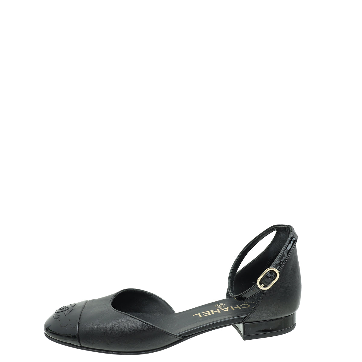 Chanel Black CC Cap Toe CC Ankle Strap Flats 37-Chanel-THE CLOSET