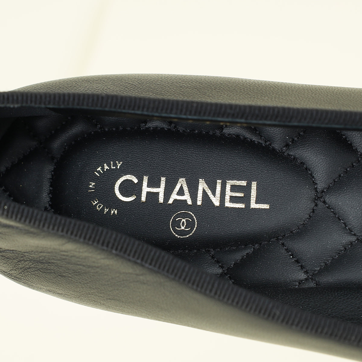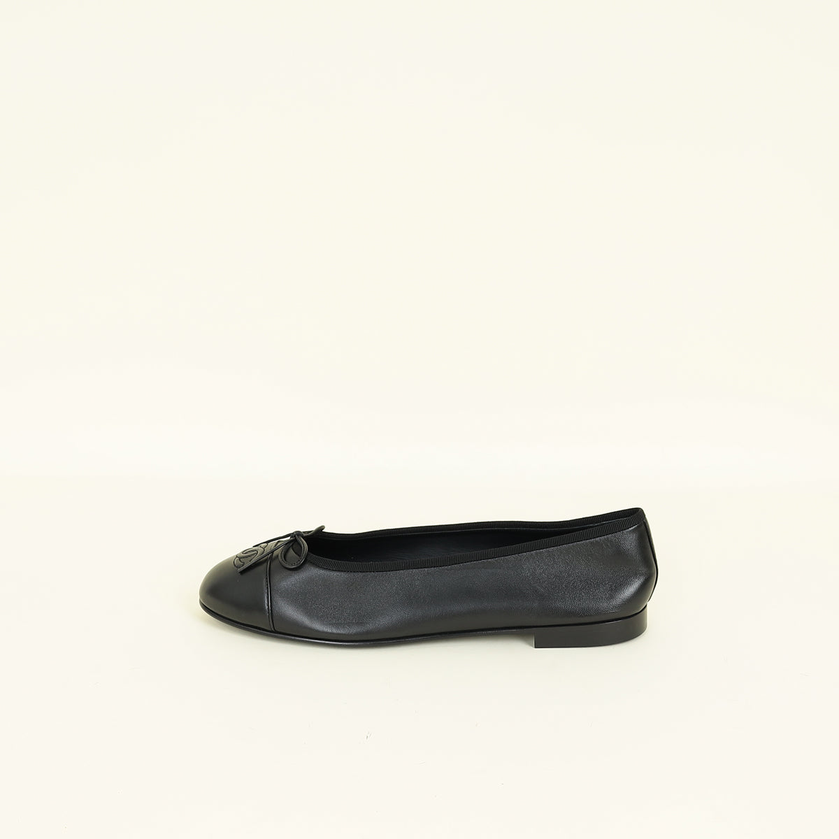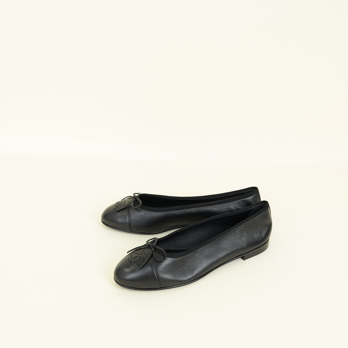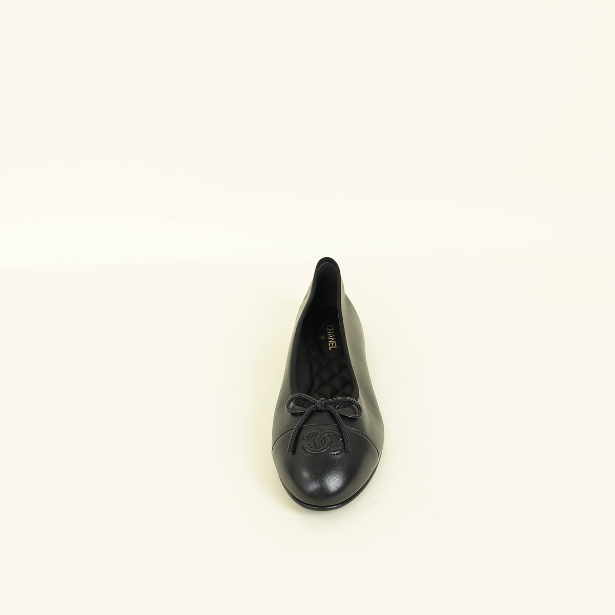 Chanel Black CC Cap Toe Flat Ballerina 42