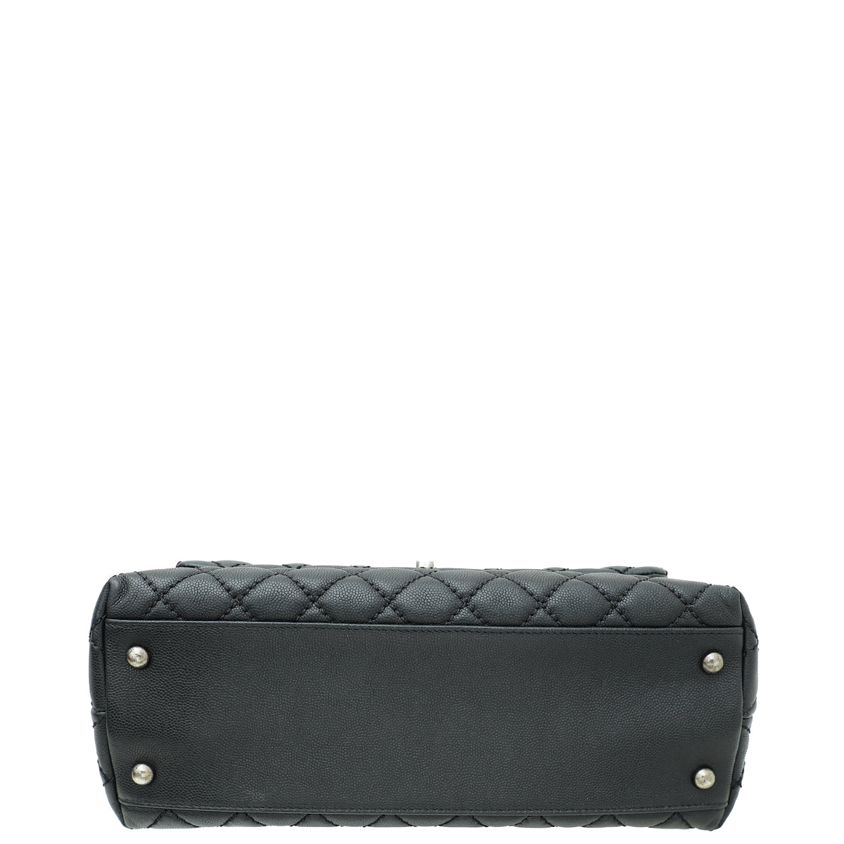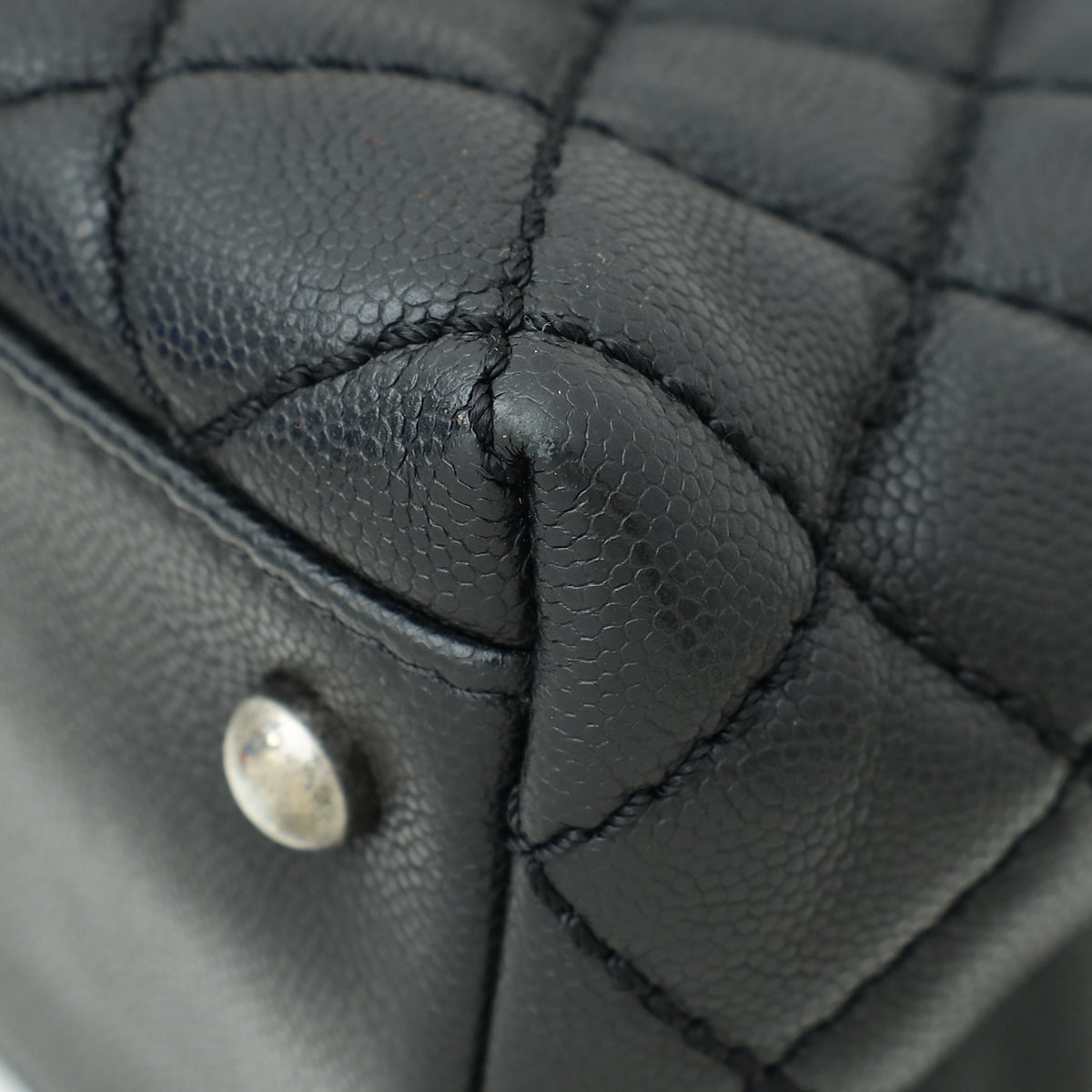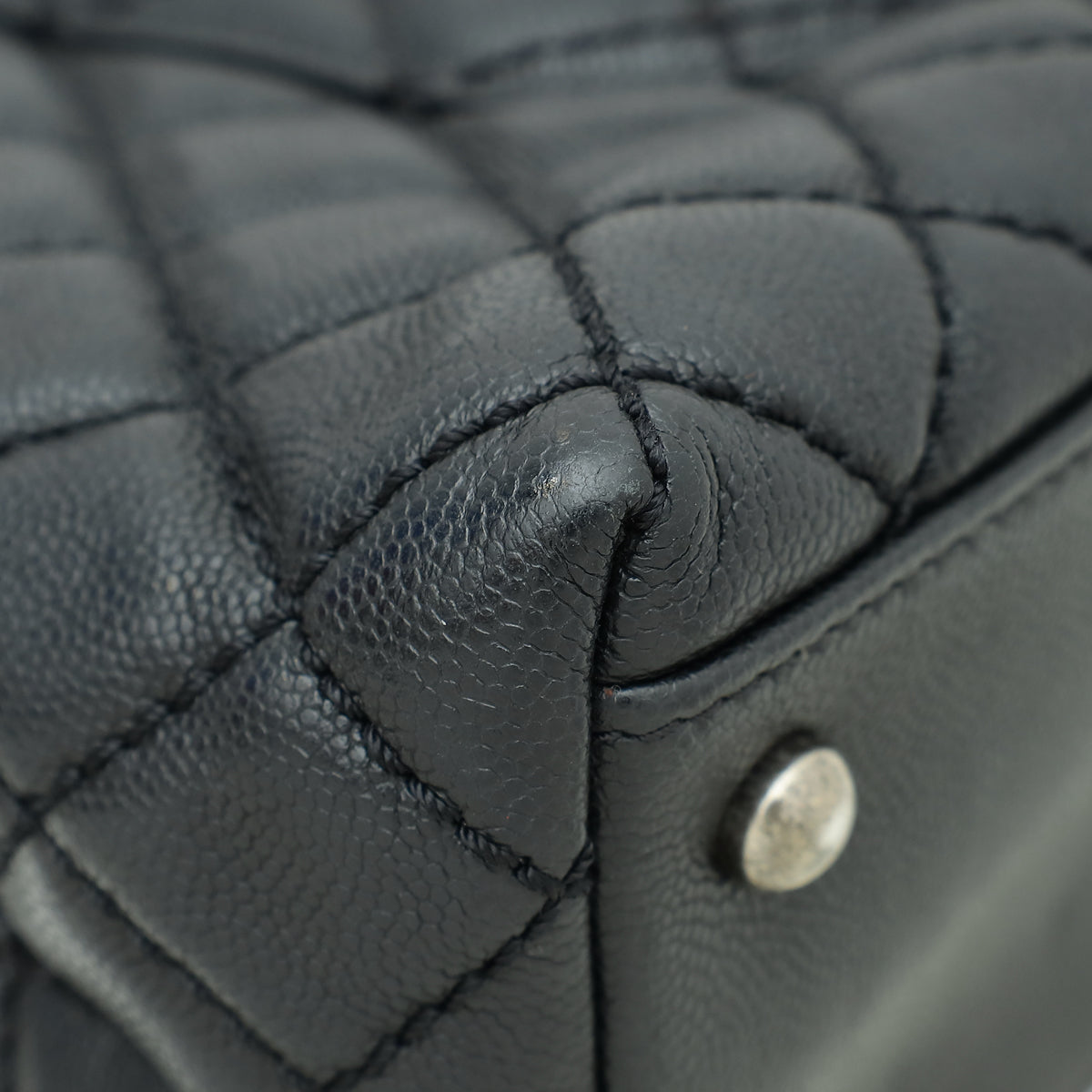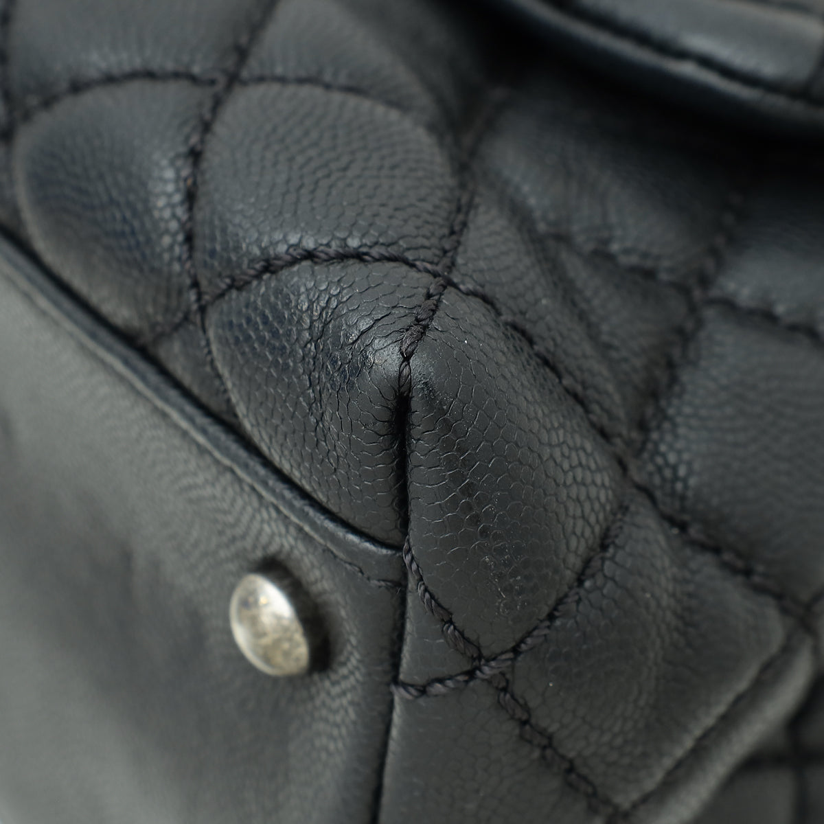 - Material: Black Quilted Caviar Leather with Lizard Handle Leather Trim