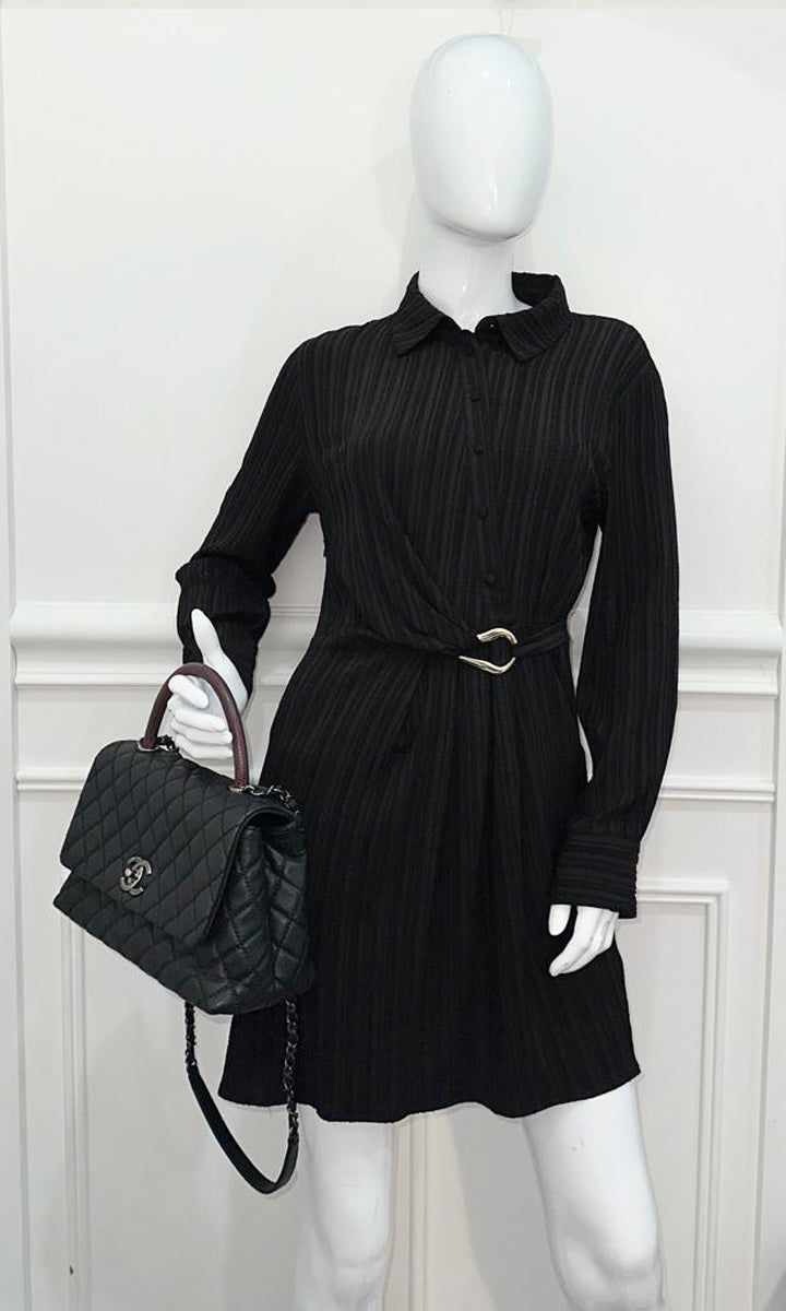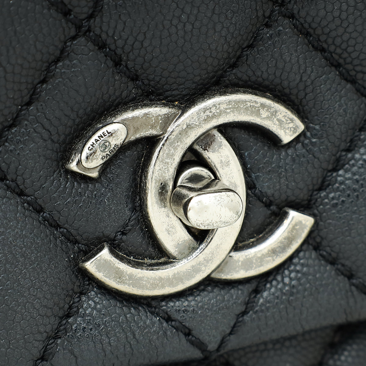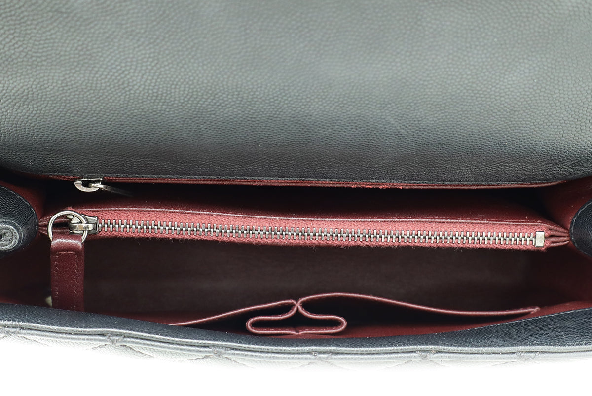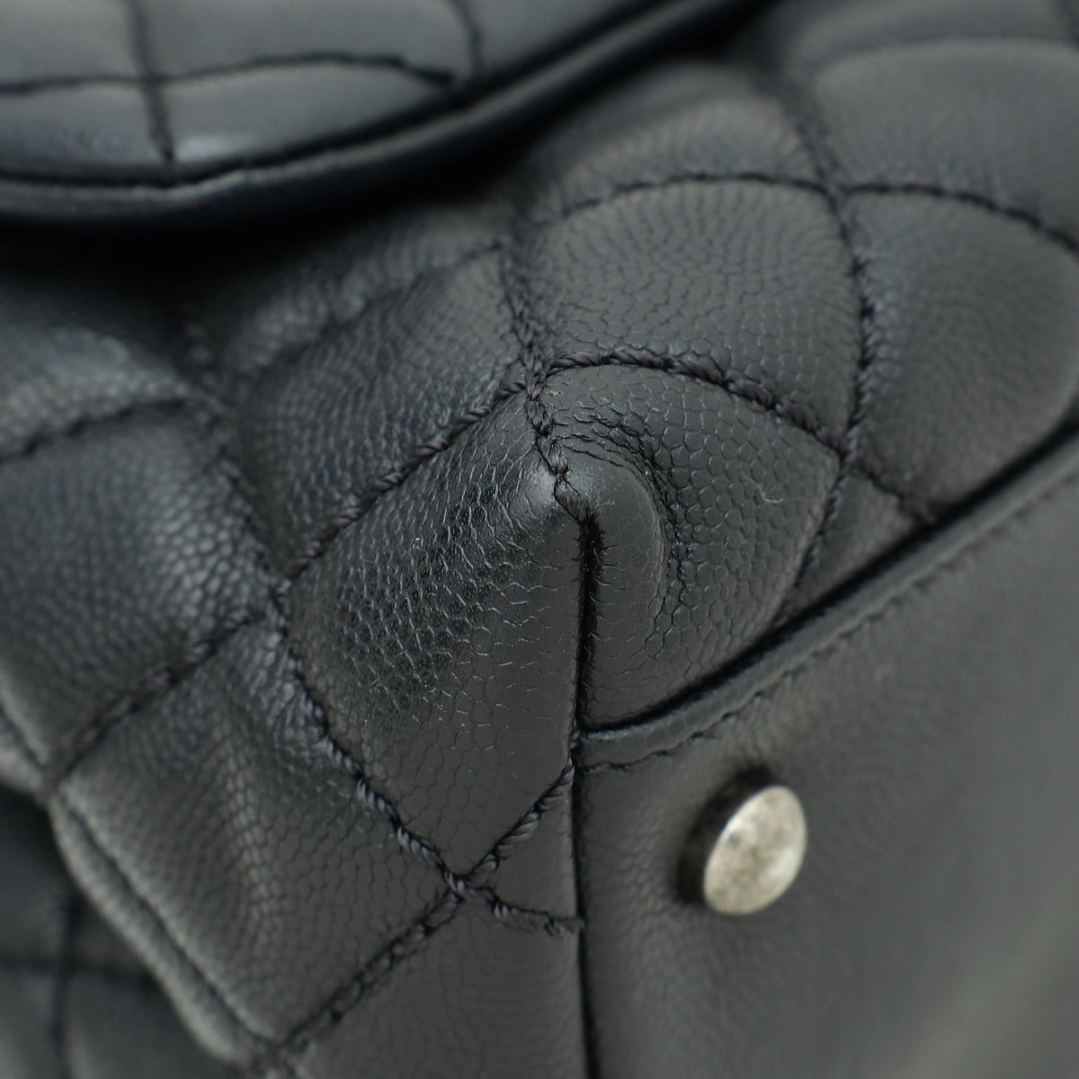 - Material: Black Quilted Caviar Leather with Lizard Handle Leather Trim