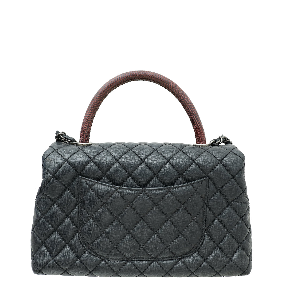 Chanel Black CC Coco Handle Lizard Top Handle Bag