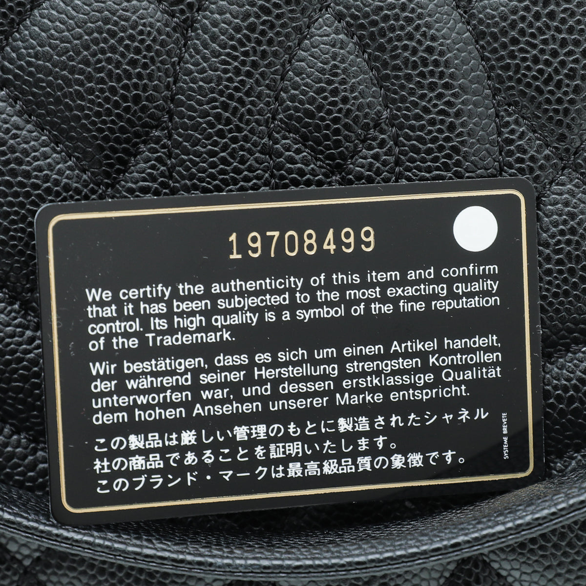 Material: Black Quilted Caviar Leather