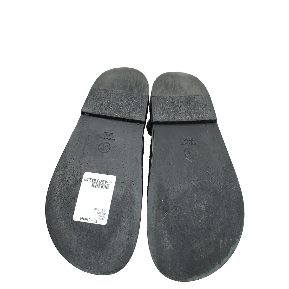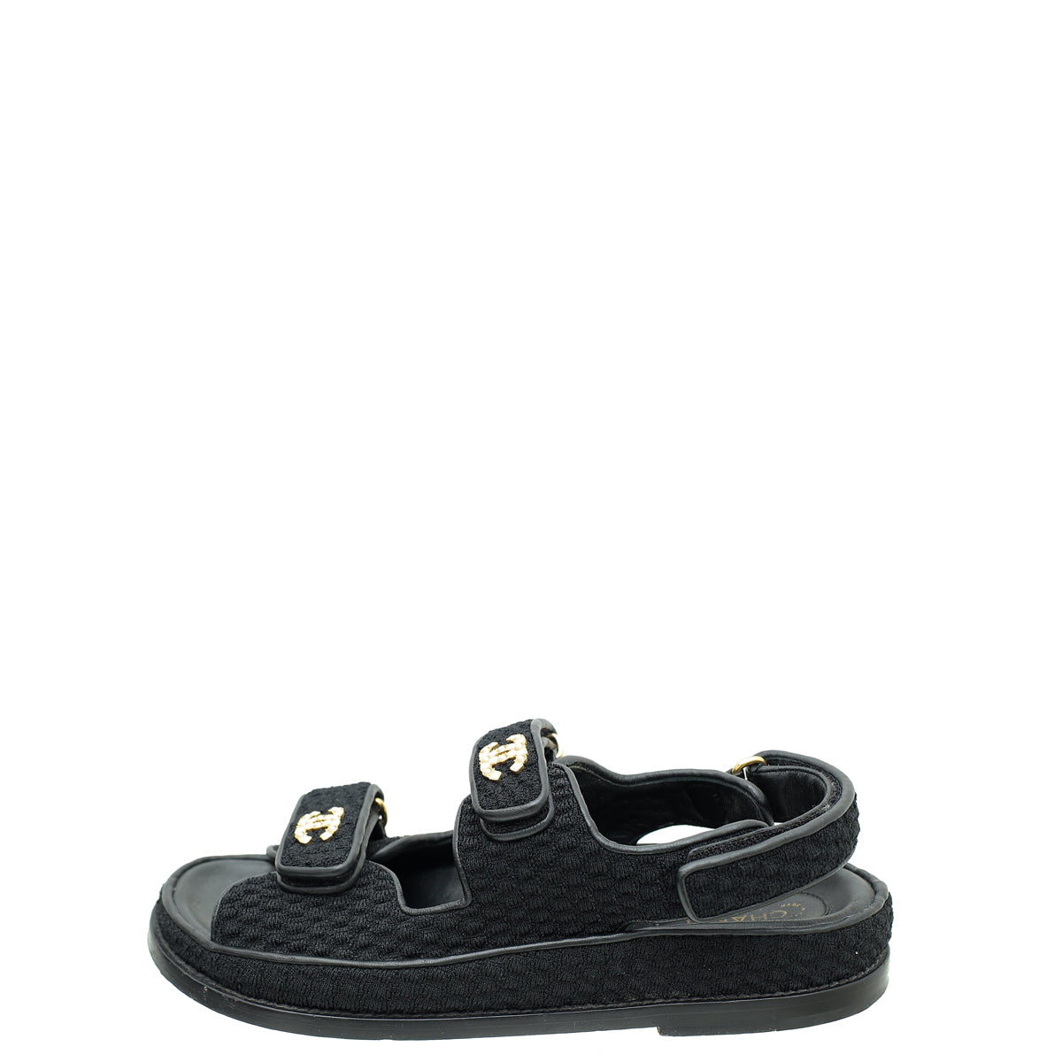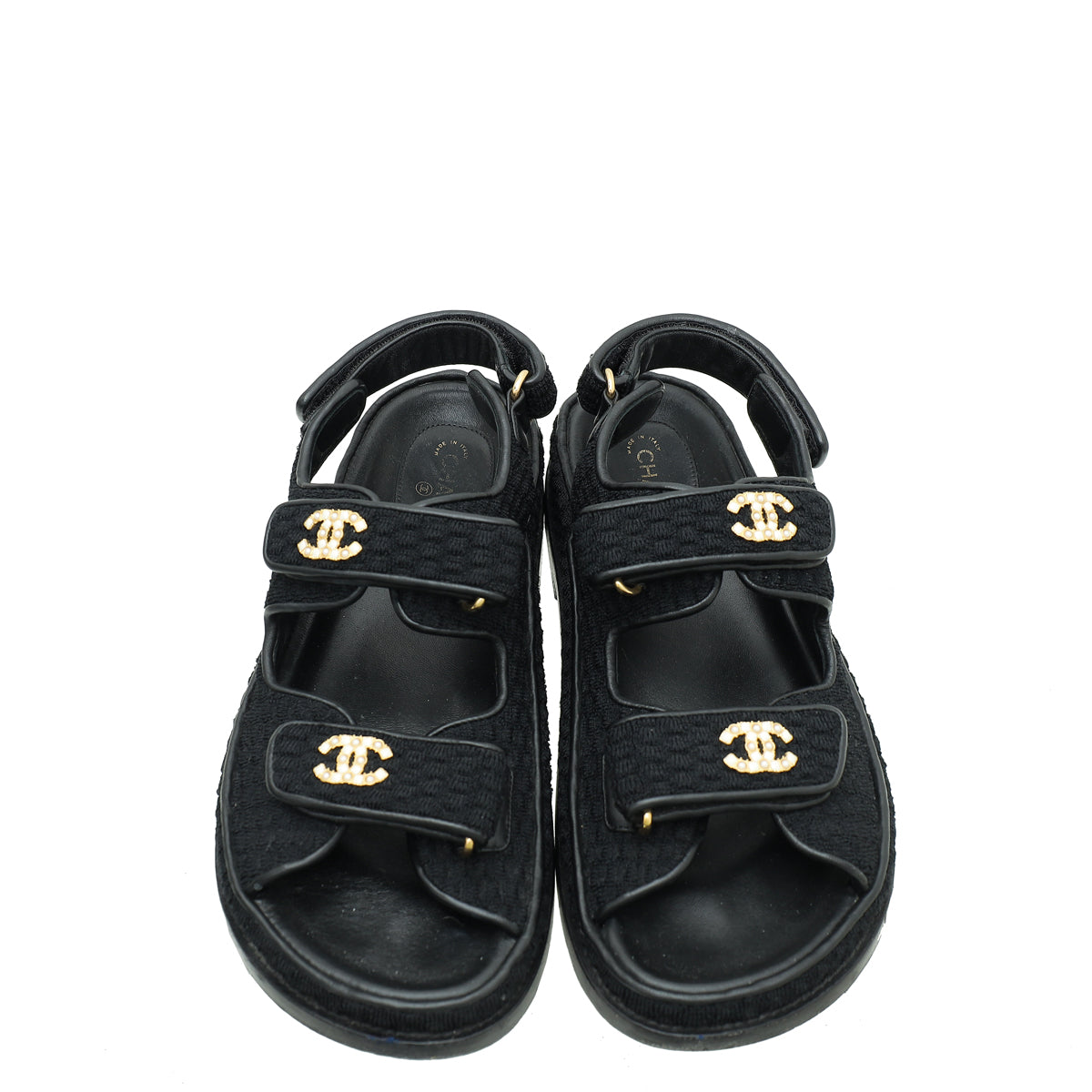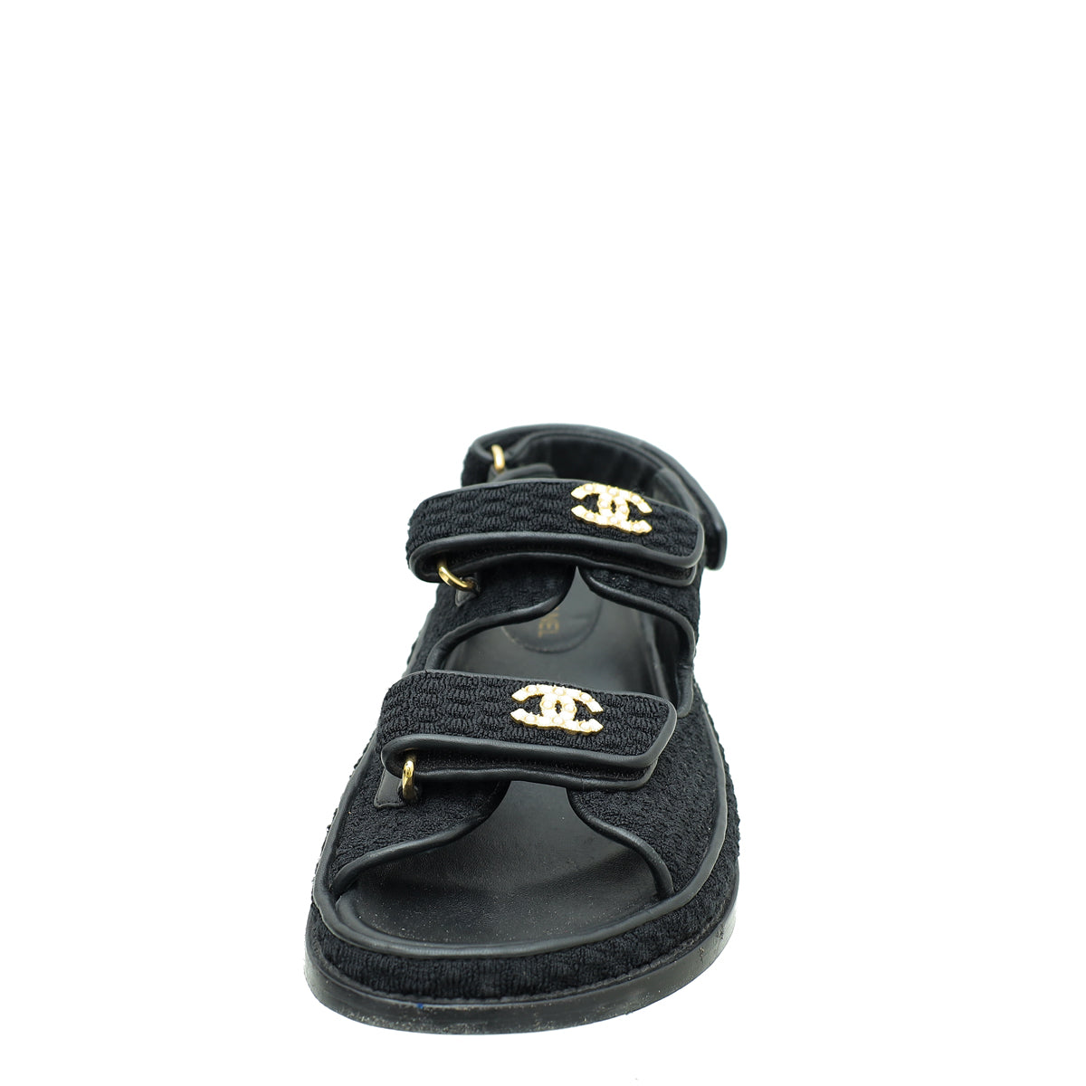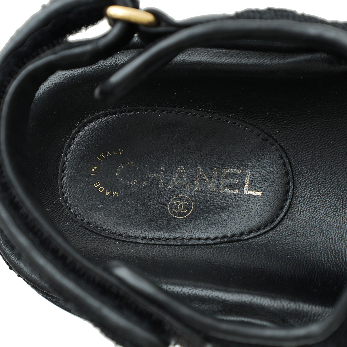 Chanel Black CC Pearl Knit Dad Sandals 38.5