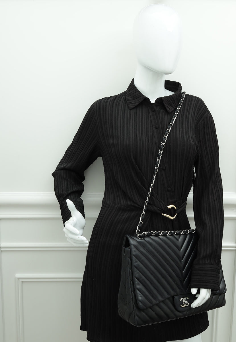 Chanel Black Chevron Classic Maxi Single Flap Bag