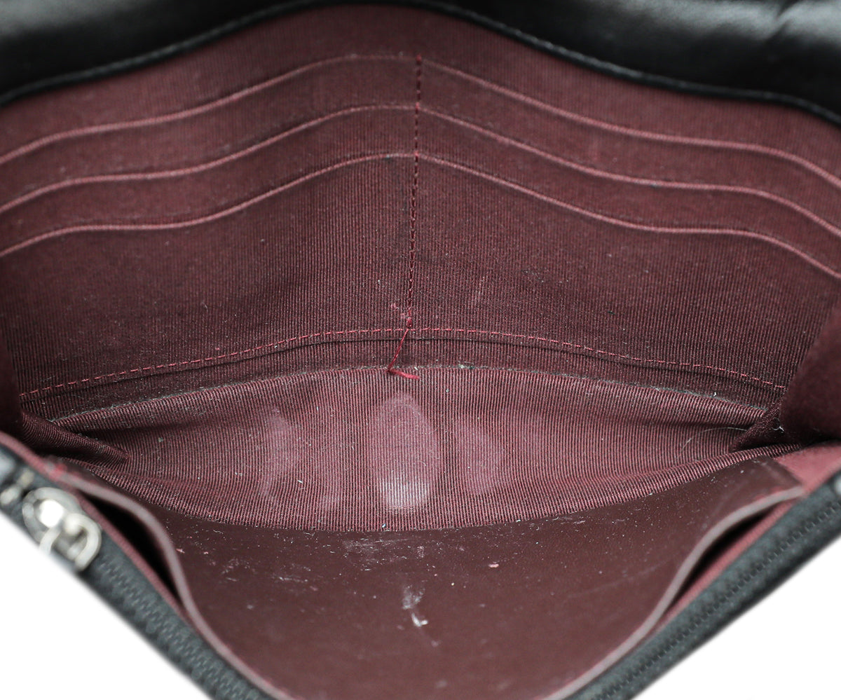 Interior: good condition, with white spots on fabric, pink stain on front flap area and showing normal signs of use.
