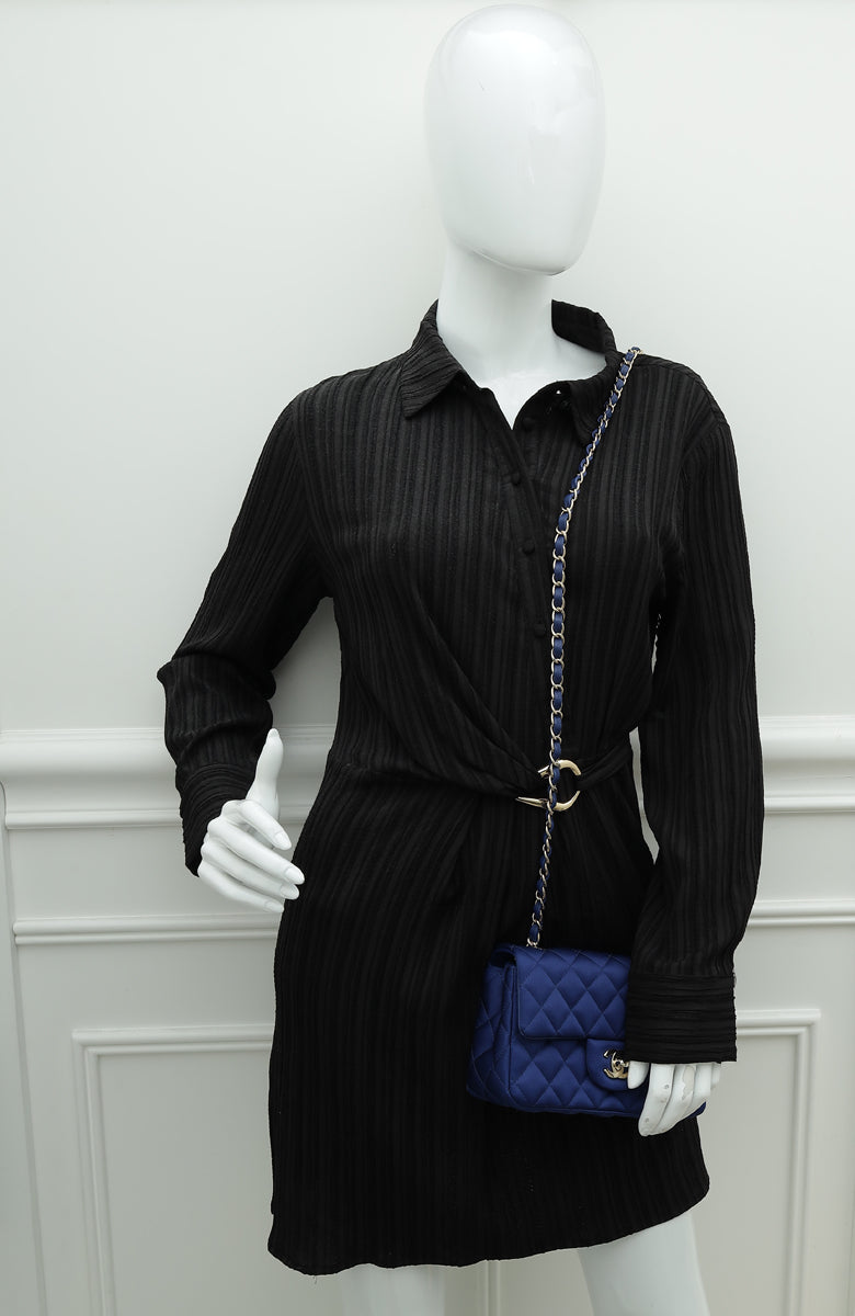 Chanel Blue Satin CC Classic Mini Rectangular Flap Bag