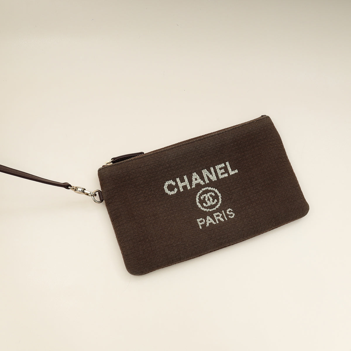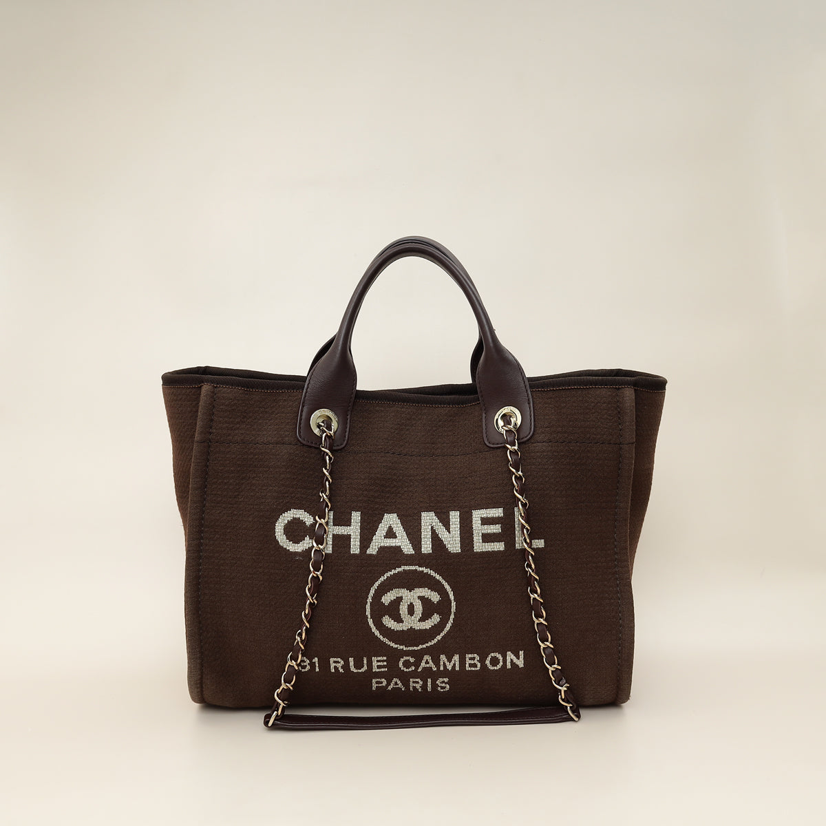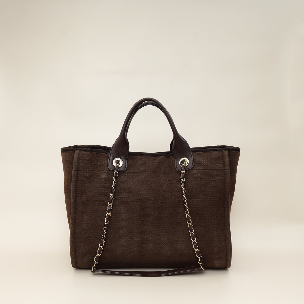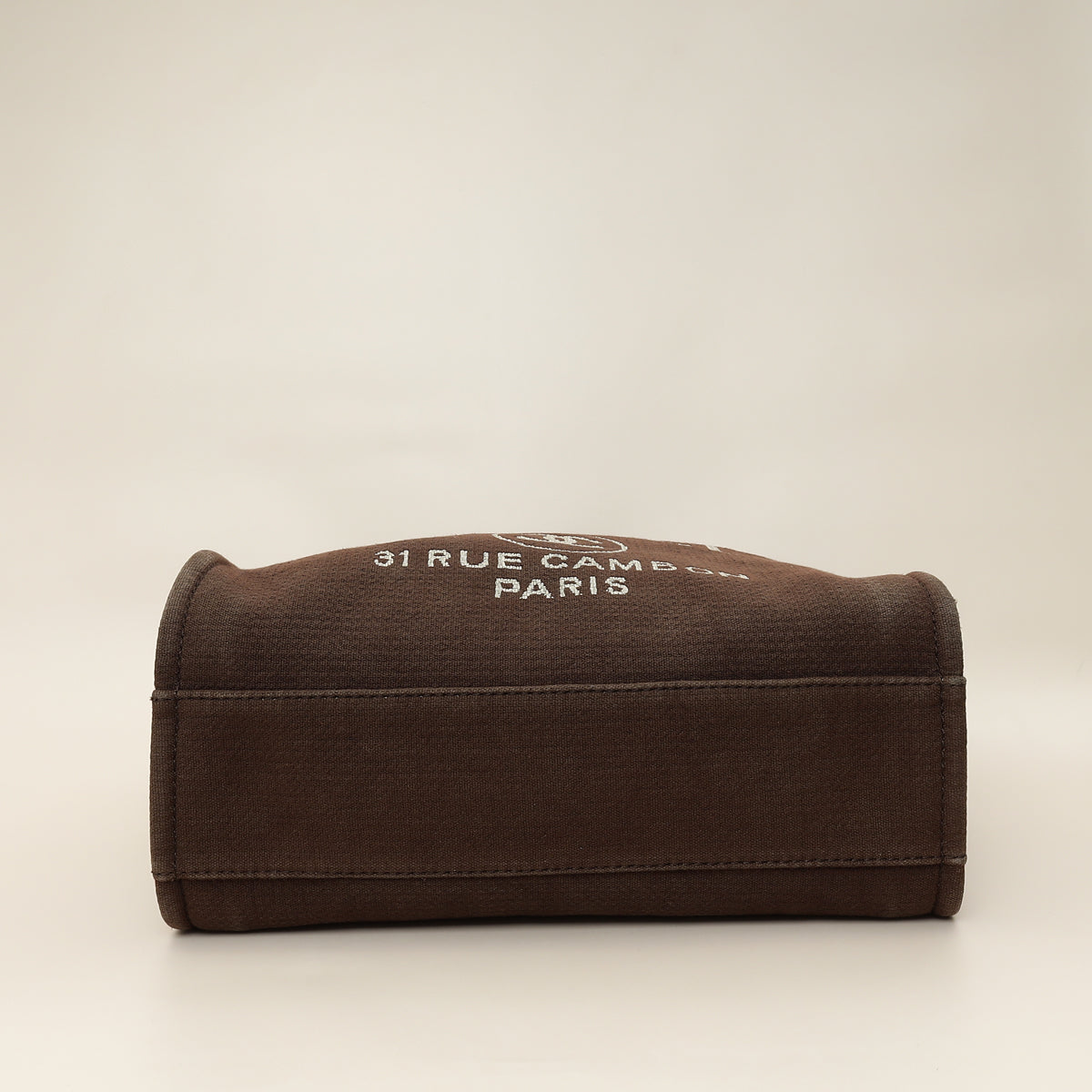 Chanel Brown CC Deauville Mixed Fabric Medium Tote Bag