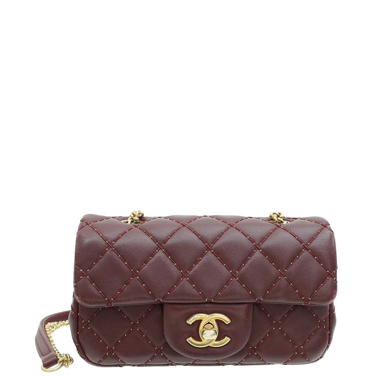 Material: Burgundy Quilted Lambskin Leather