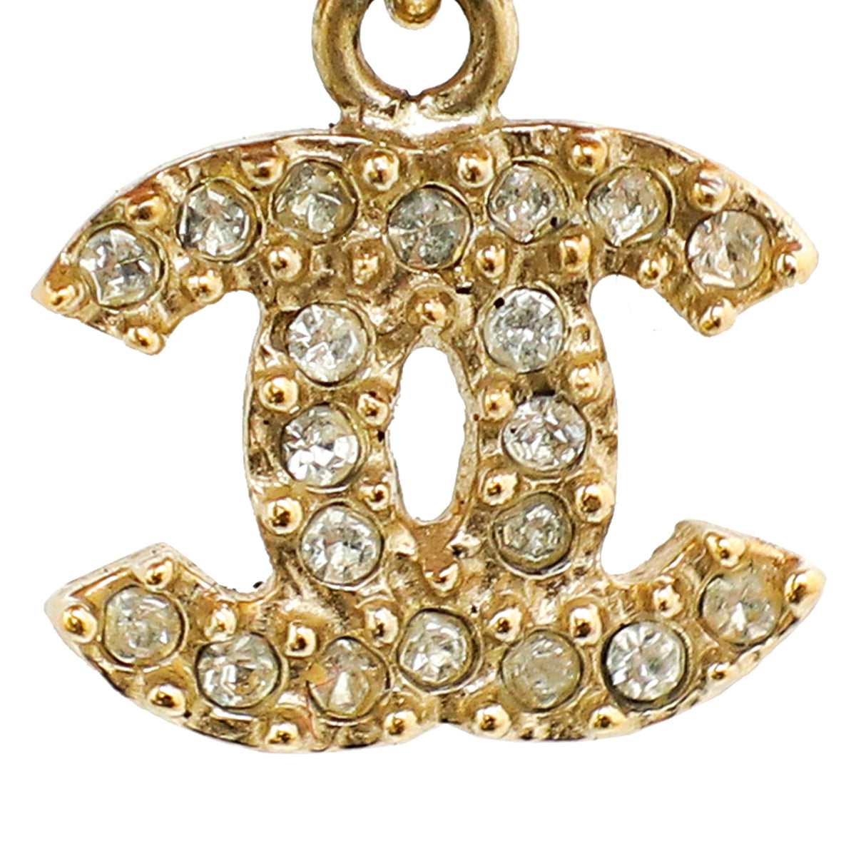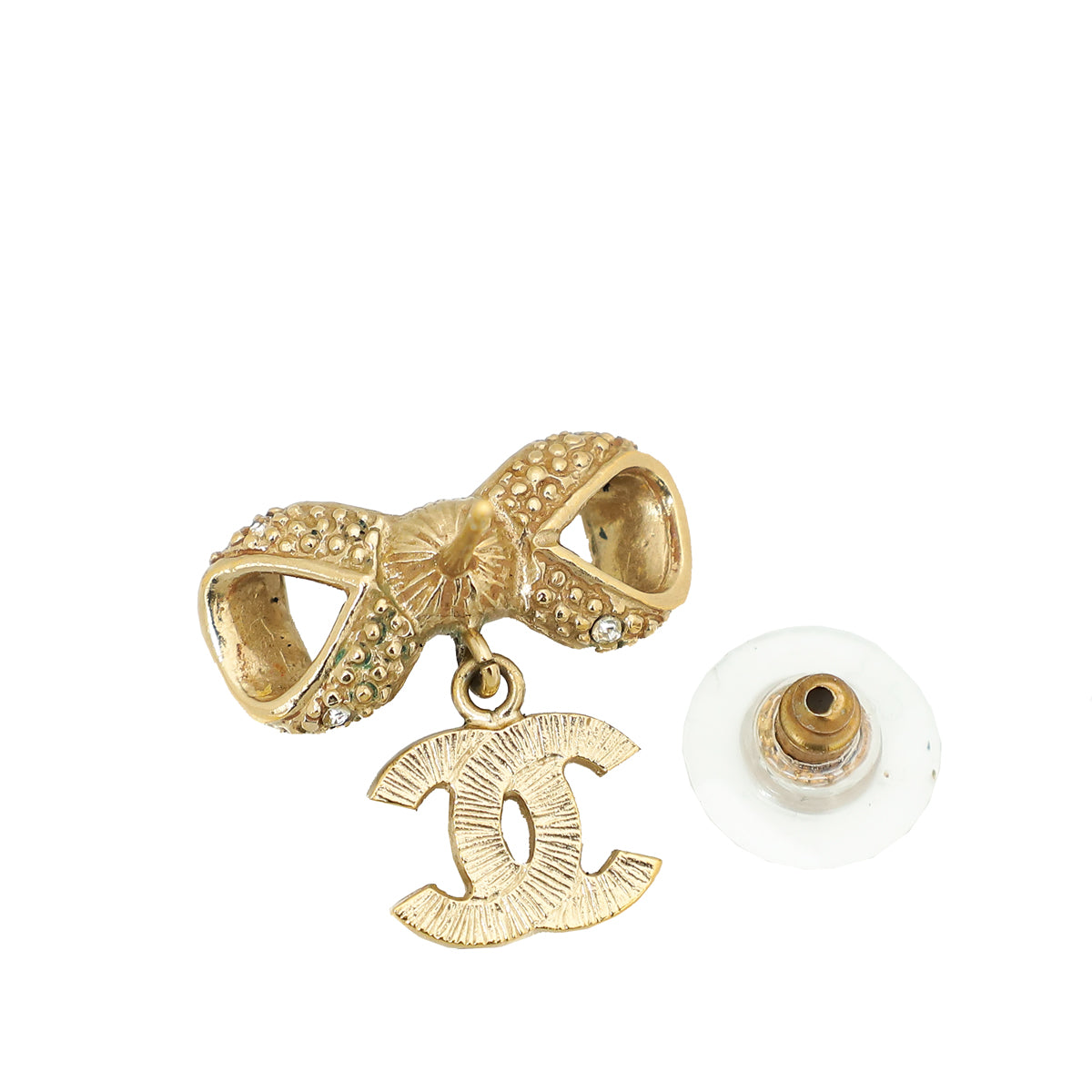 Chanel Gold Crystal CC Bow Drop Earrings-Chanel-THE CLOSET