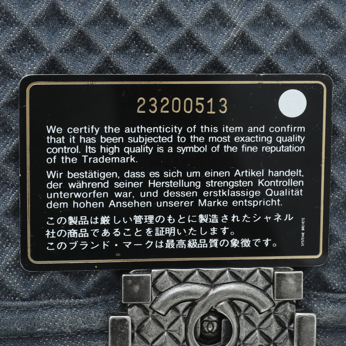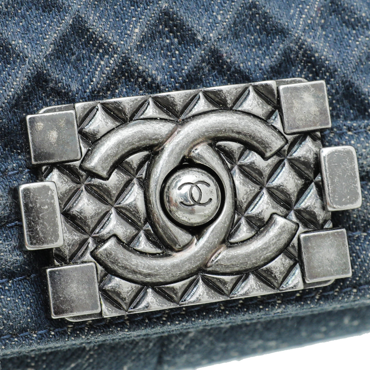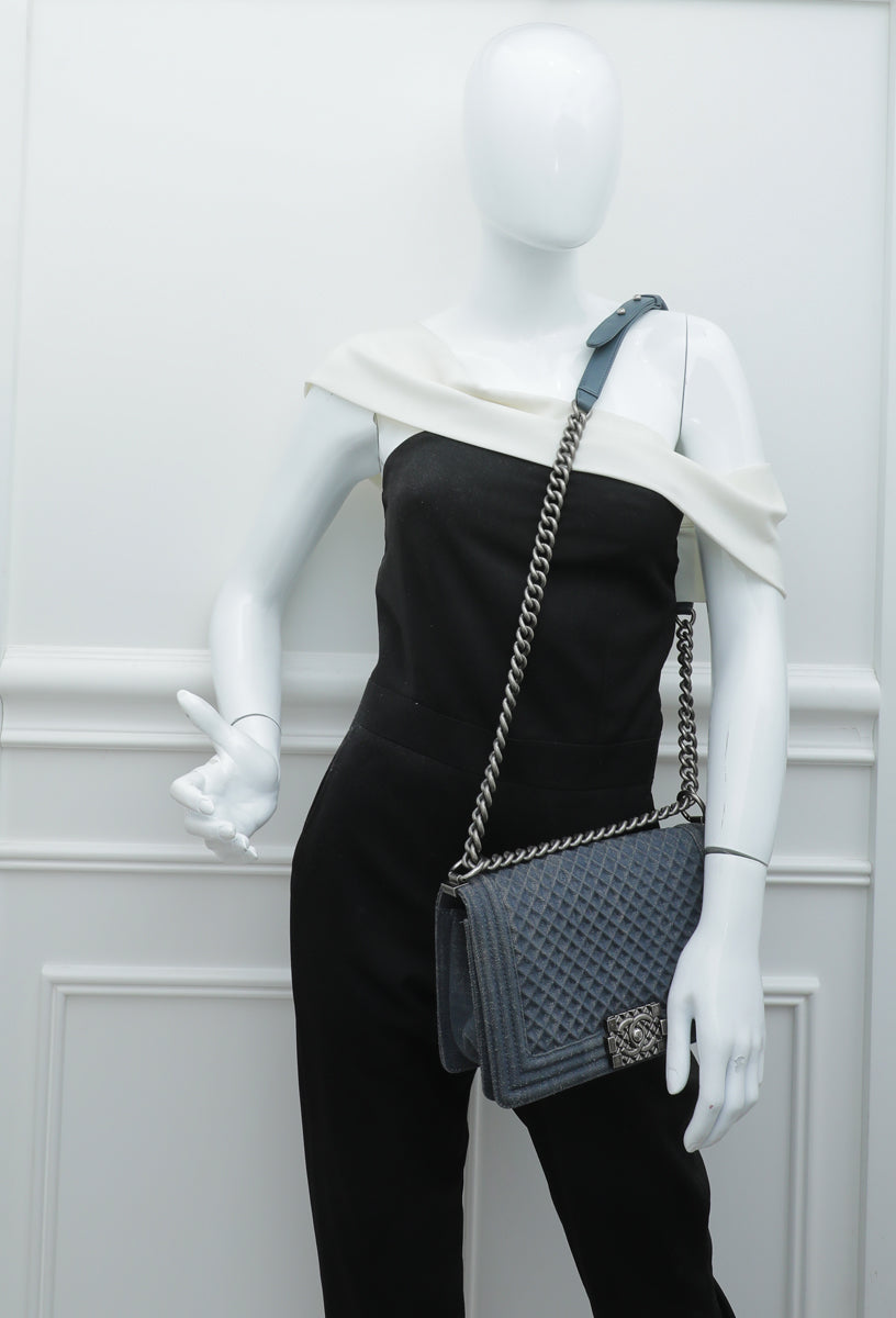 Chanel Grey Blue Le Boy Denim Diamond Medium Bag
