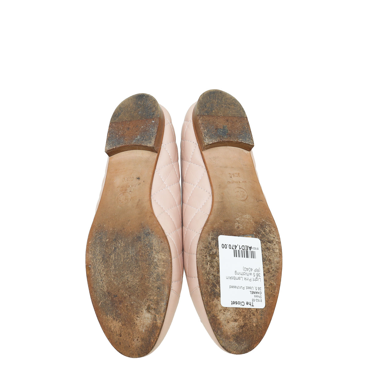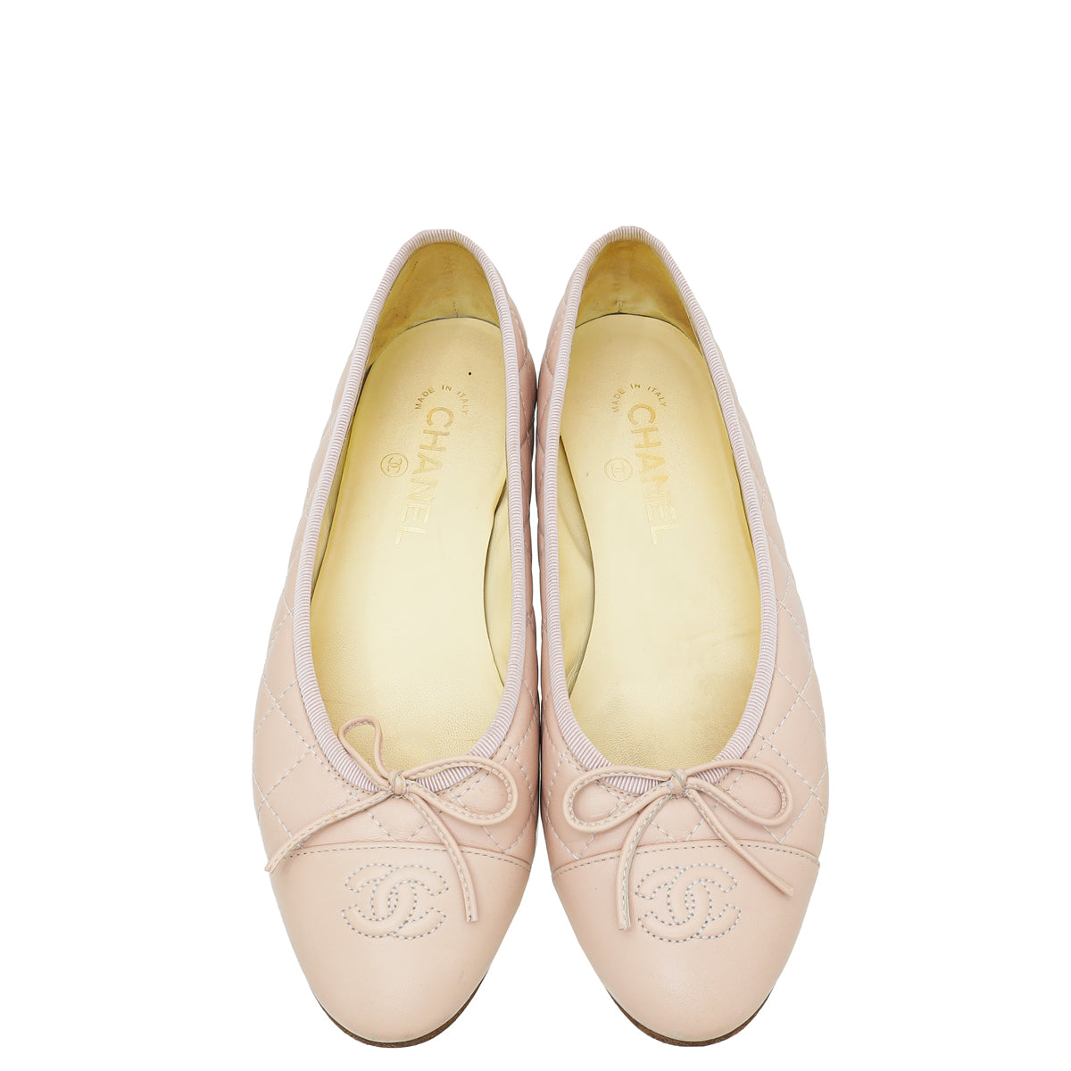 Chanel Light Pink CC Quilted Ballerina Flats 38.5