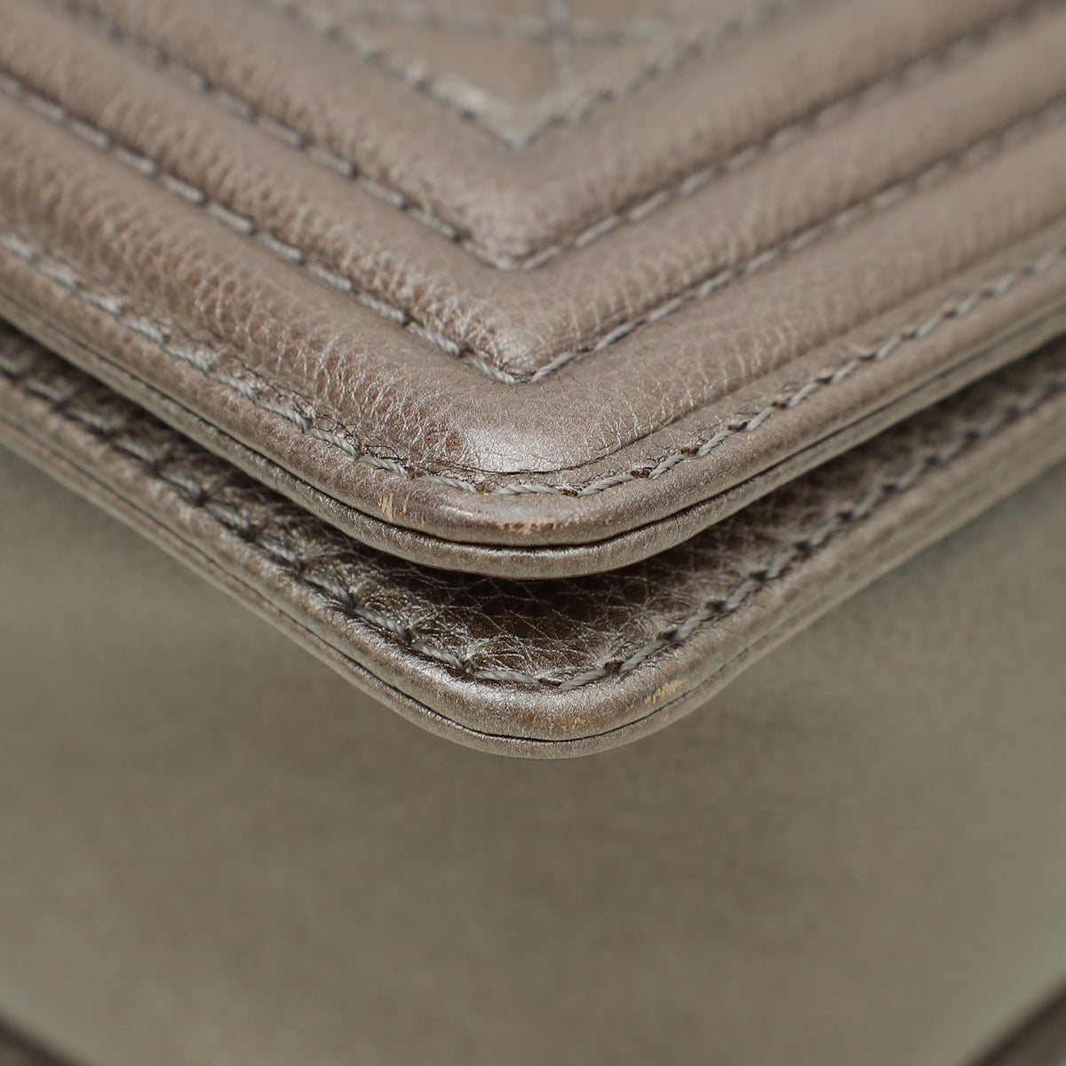 Material: Metallic Bronze Gray Quilted Calfskin Leather