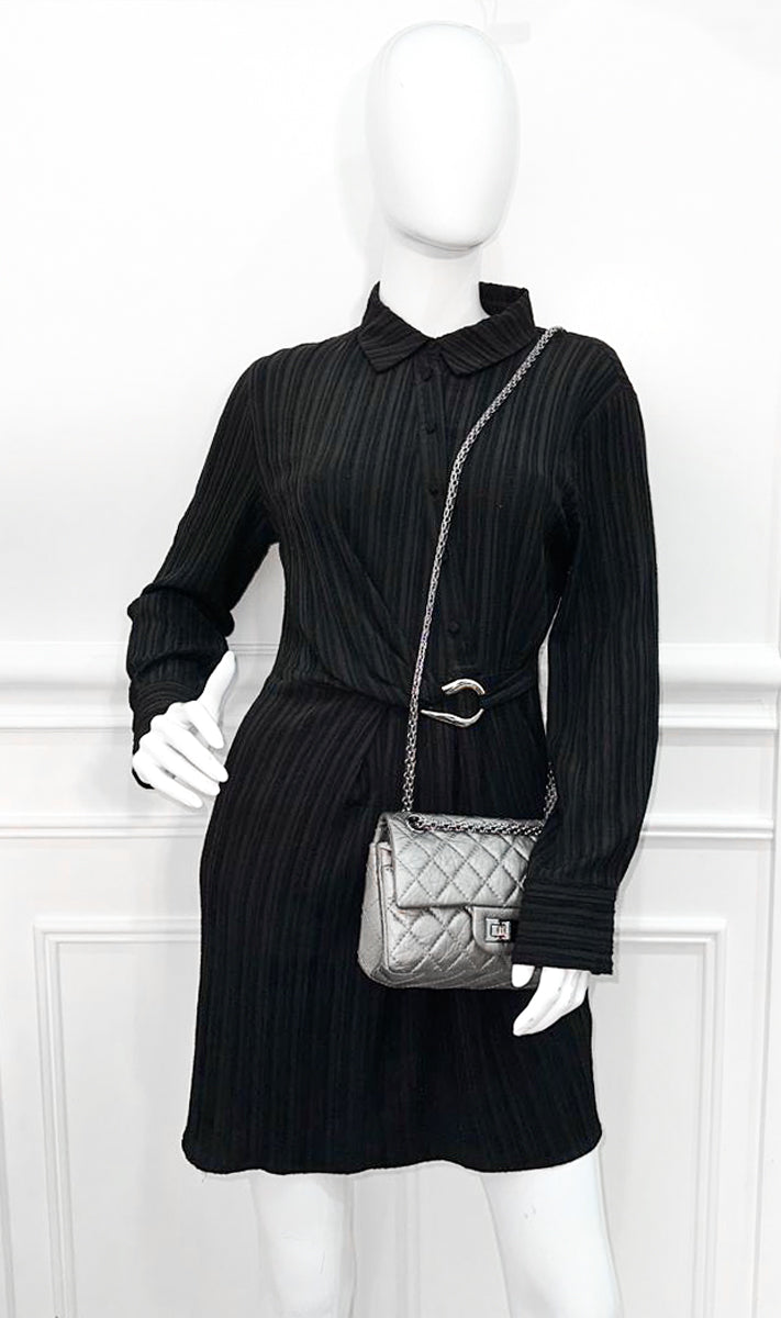 Material: Metallic Grey Quilted Aged Calfskin Leather