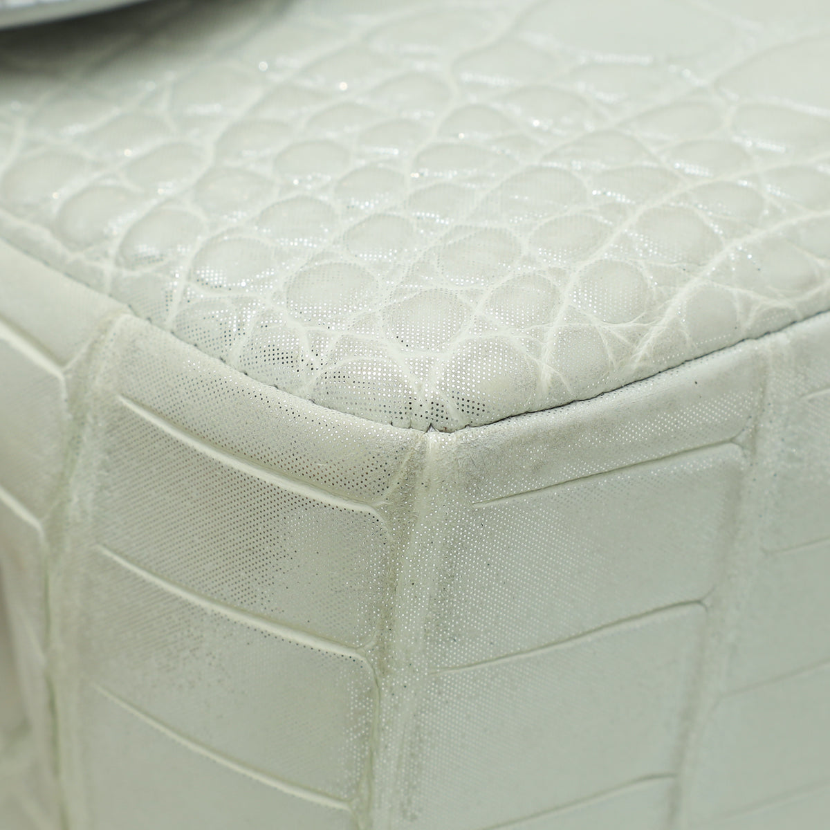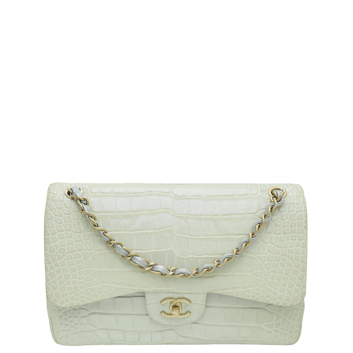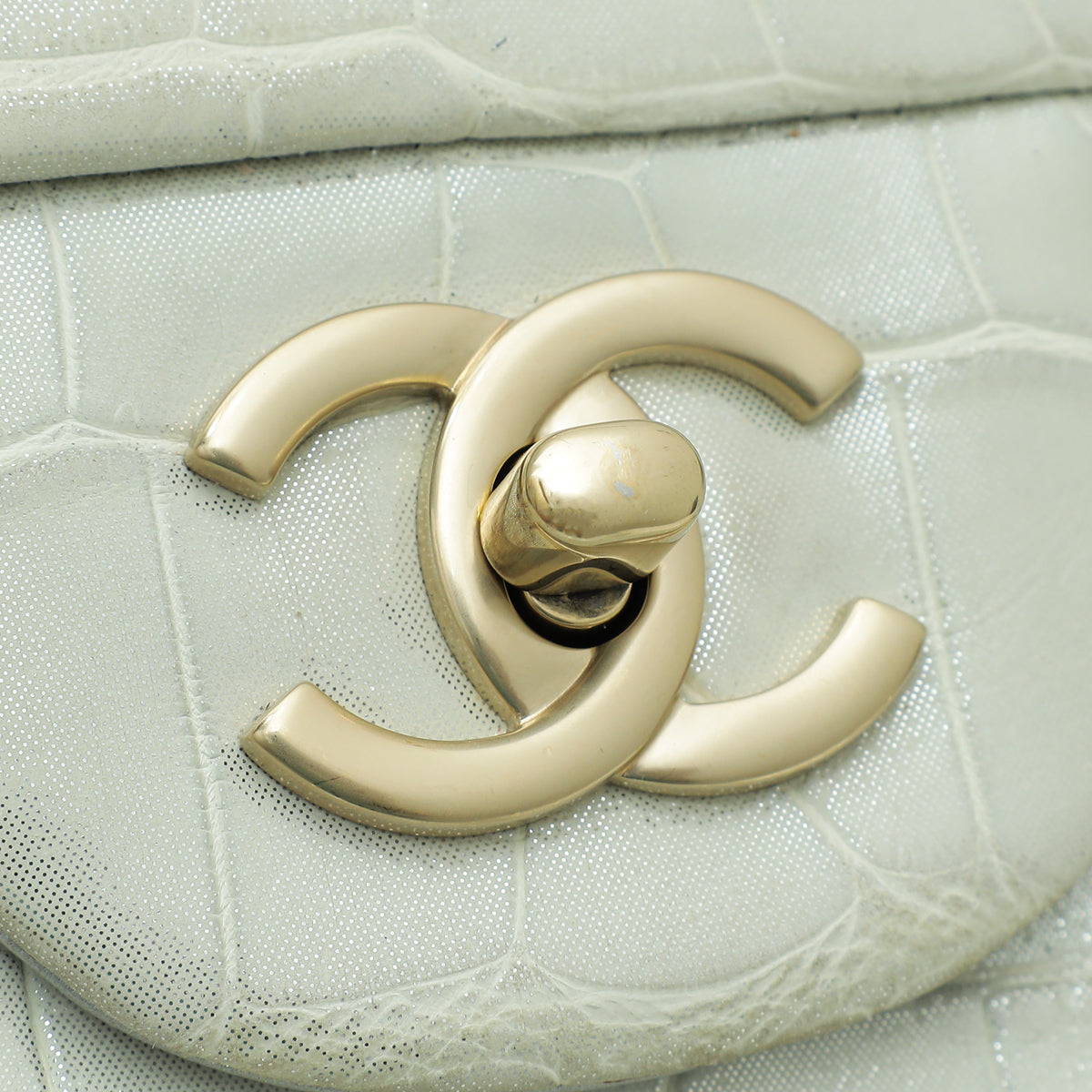 Chanel Metallic Grey CC Classic Shimmer Alligator Double Flap Jumbo Bag